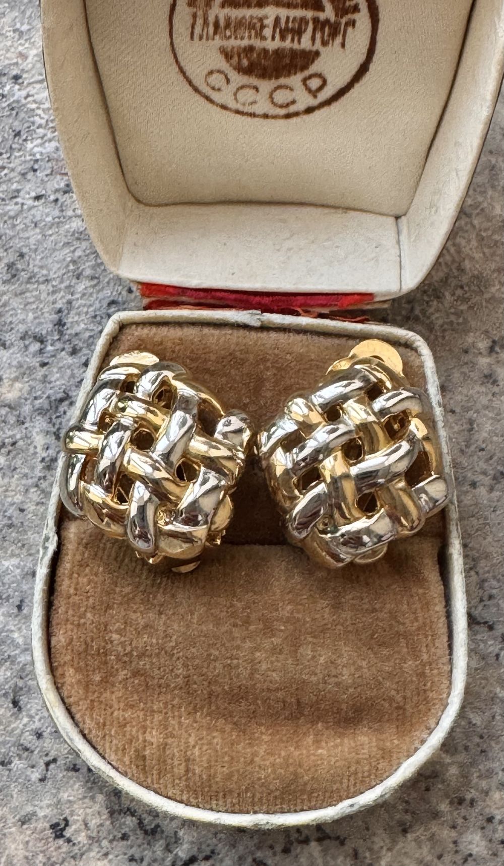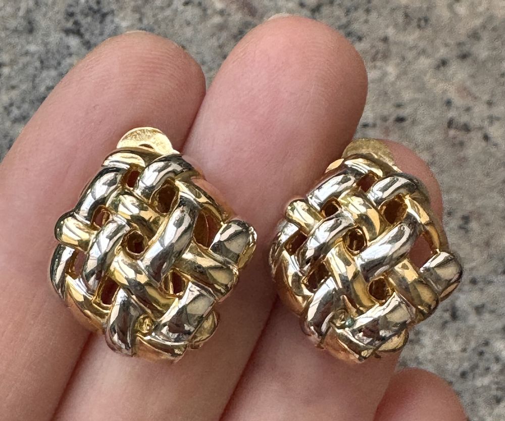 Клипсы из металла двух тонов. Размер 2х2см. Состояние хорошее.