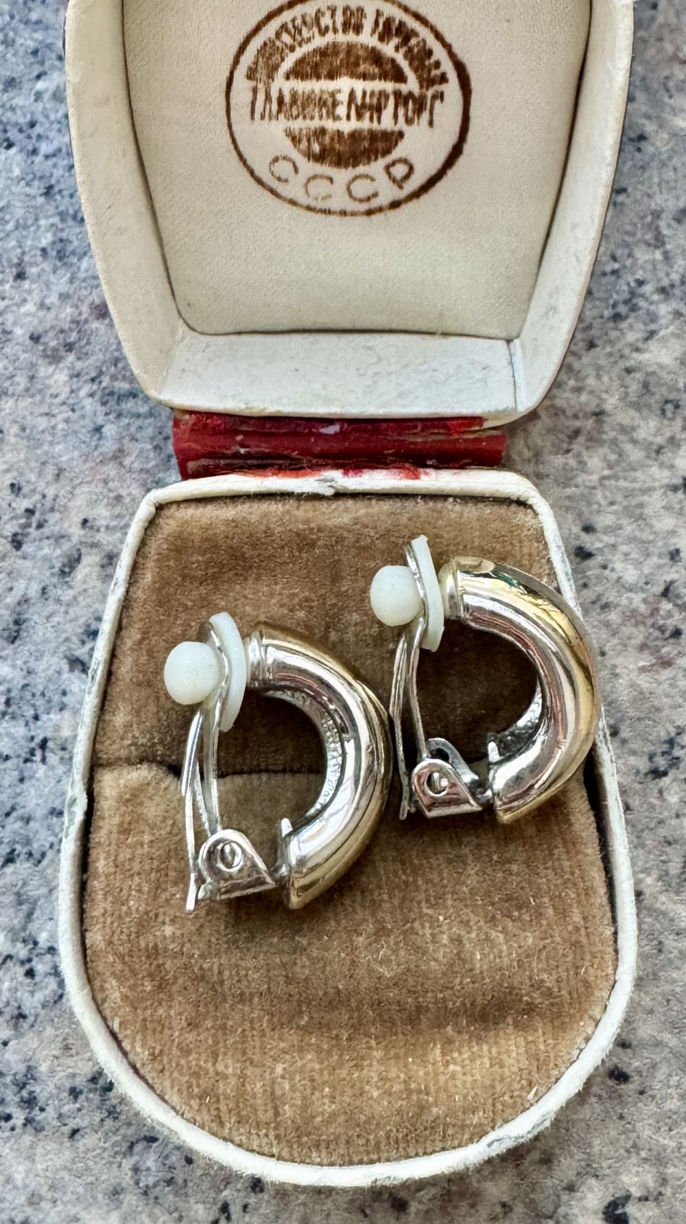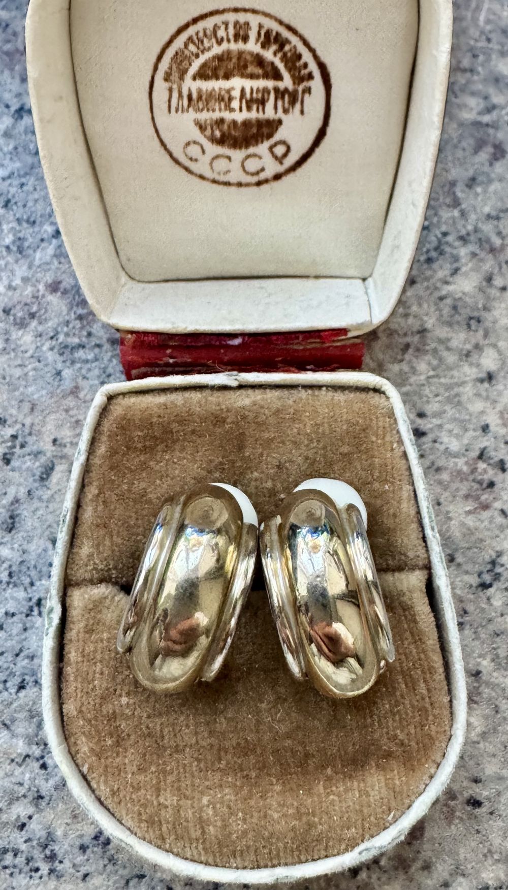 Винтажные клипсы из металла двух тонов. Высота 1,8см., ширина 0,9см. Имеются незначительные потертости на металле.