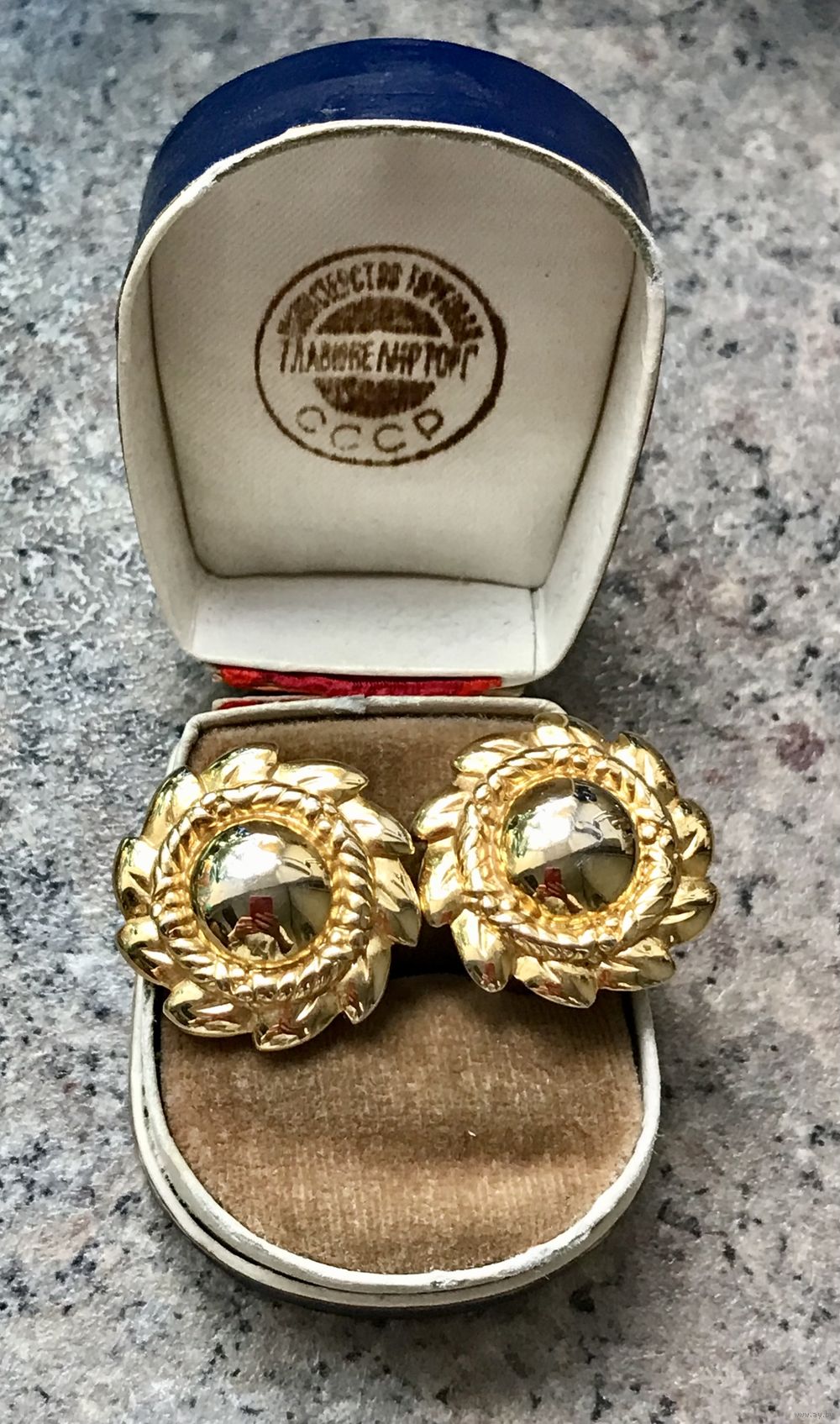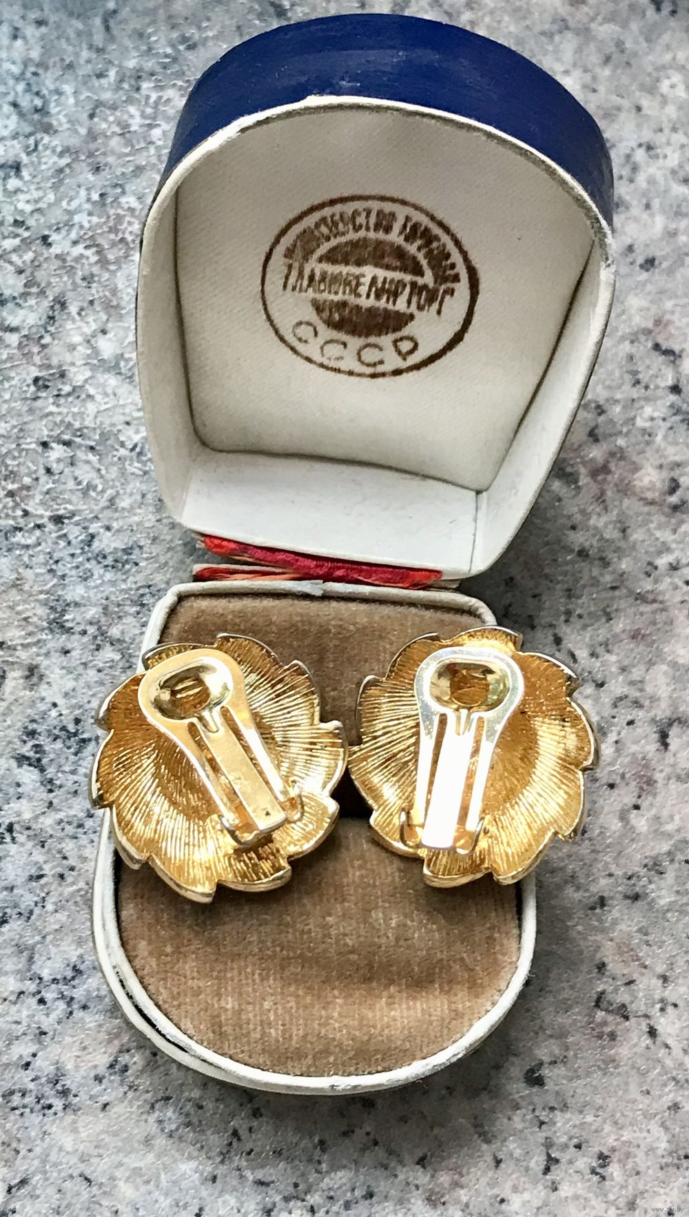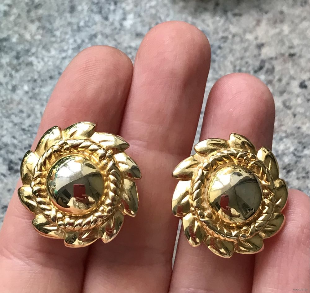 Клипсы из металла золотого тона. Диаметр 2,5см. Состояние хорошее.