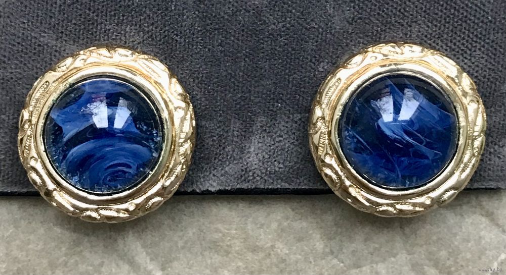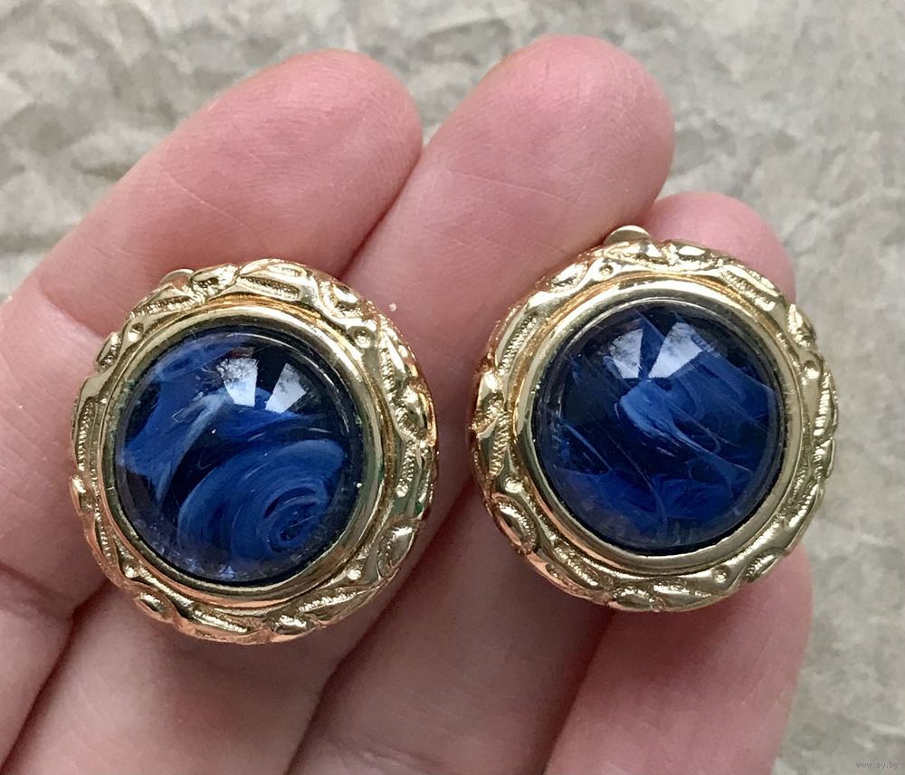 Крупные эффектные клипсы от компании Henkel&Grosse (товарный знак Grosse), которая создавала украшения для модного дома Dior на протяжении 50-ти лет. Клипсы сделаны в 80-е гг. из сплава золотого тона, вставки из художественного стекла. Диаметр клипсы 2,4см., диаметр вставки 1,5см. (в одной клипсе на вставке имеется волосковая трещина, которая видна только в лупу, этот момент учтён в цене). Маркированы.