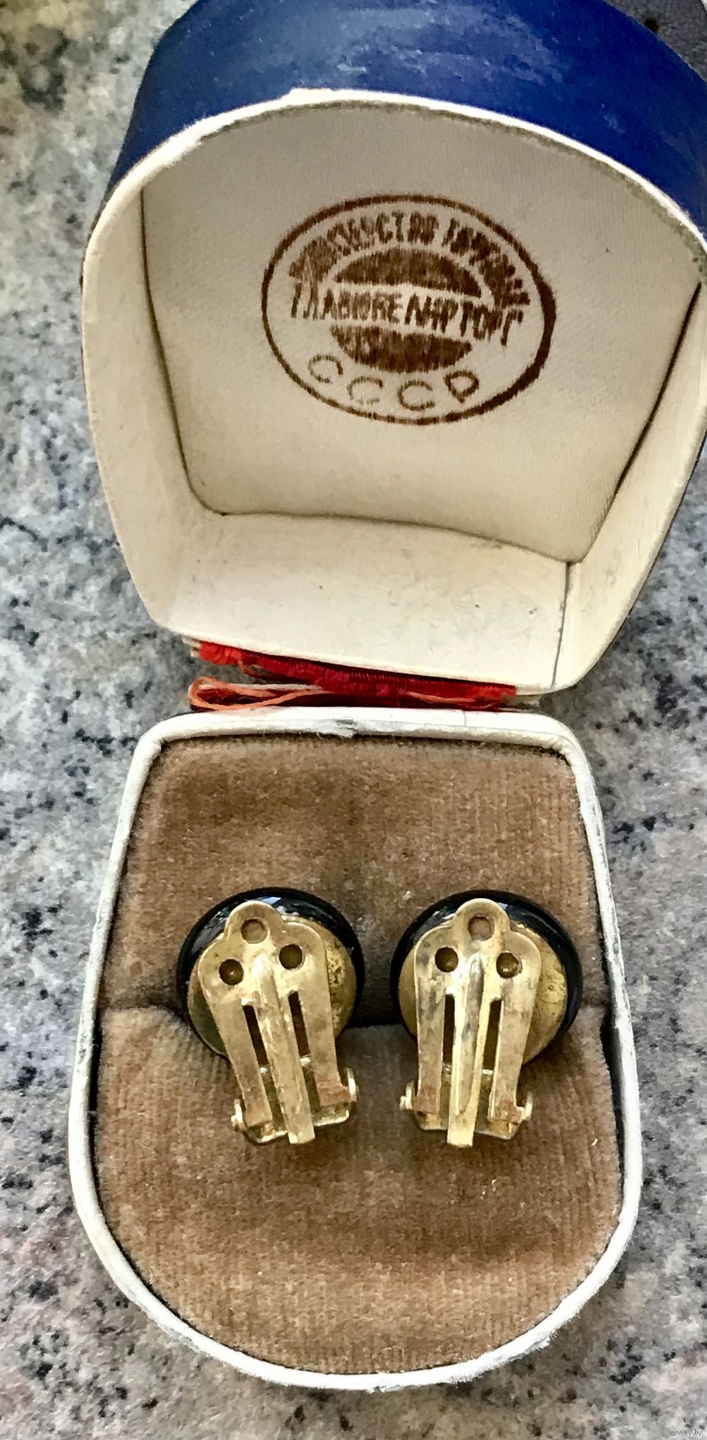 Небольшие винтажные клипсы с основой из латуни и вставки из стекла чёрного цвета. Диаметр клипсы 1,3см. Состояние хорошее.