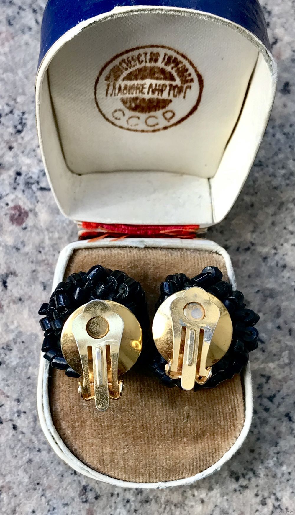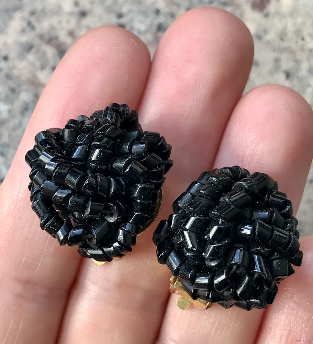 Винтажные чешские клипсы. Основа из латуни, на лицевой стороне бисер. Диаметр 2см. Состояние хорошее.