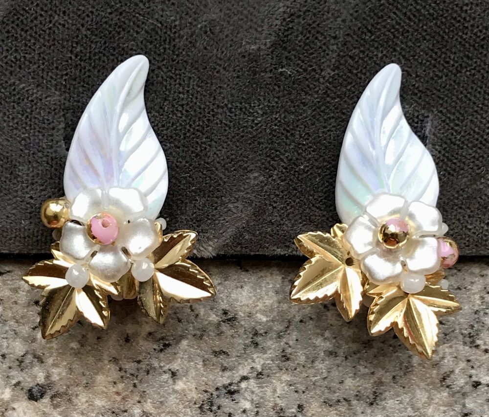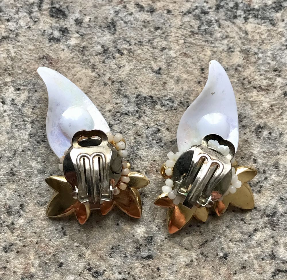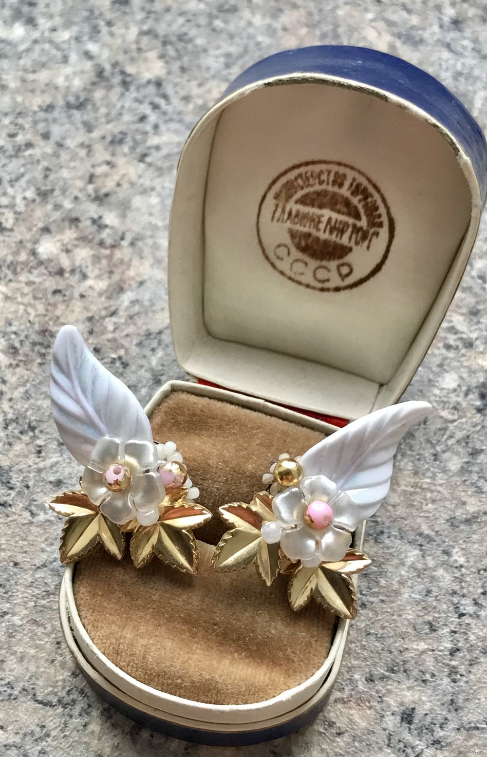 Винтажные крупные клипсы из пластика и бусин, на некоторых бусинах имеется сход покрытия. Высота клипсы 3,8см.