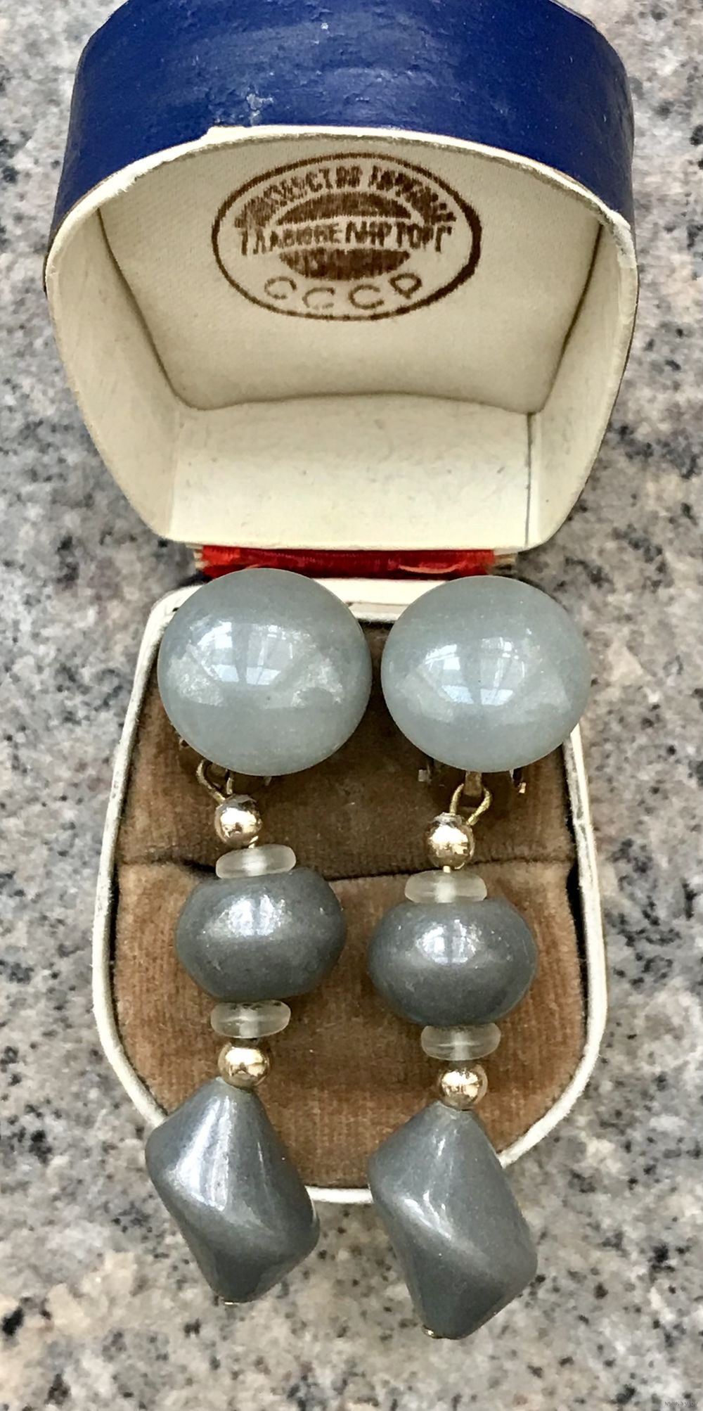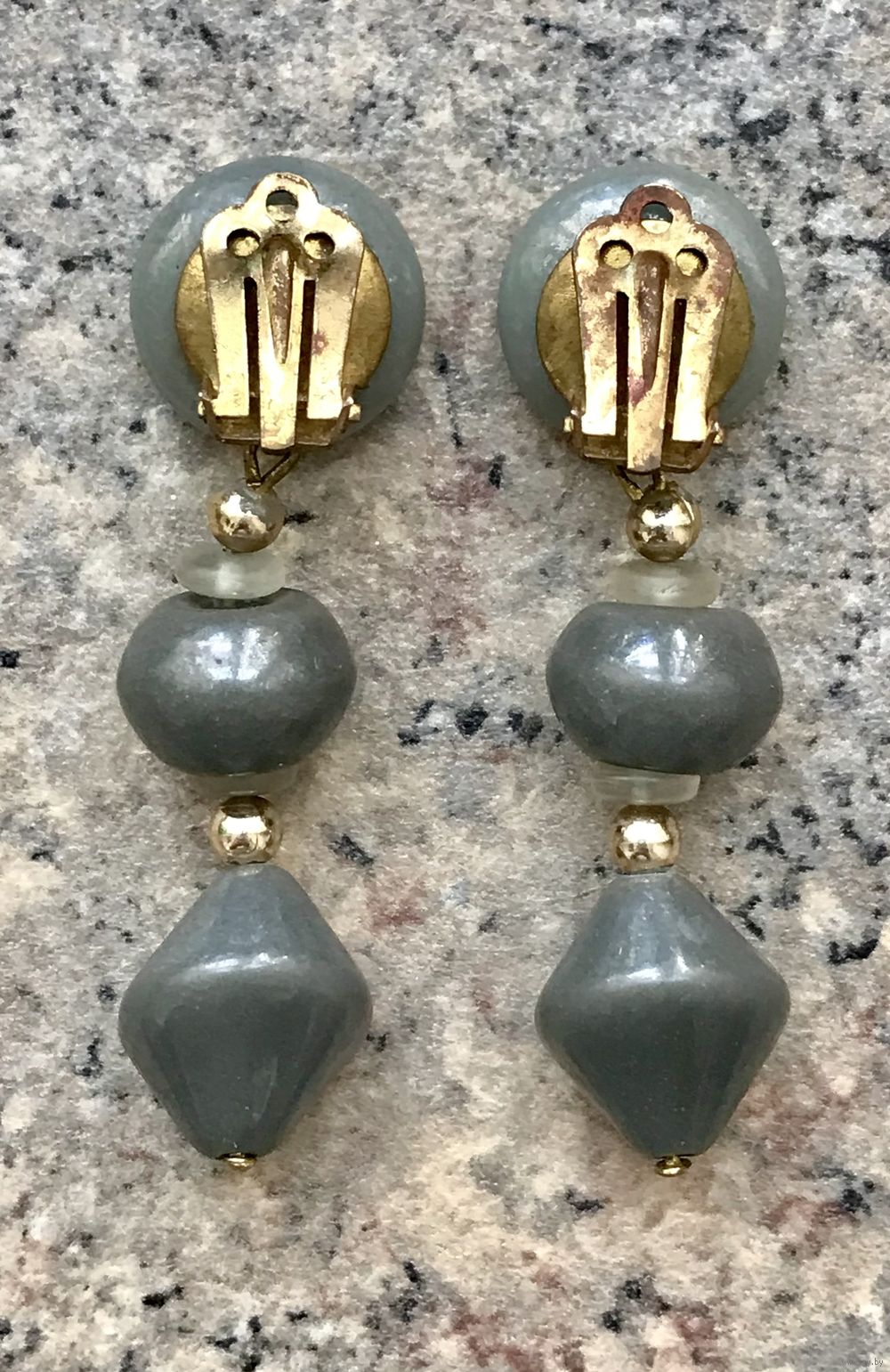 Крупные винтажные клипсы с основой из латуни и вставками из стекла. Высота 5,5см. Застёжки держат надёжно. Состояние хорошее.