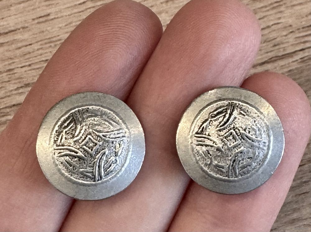 Небольшие винтажные клипсы из пьютера. Диаметр 1,7см. Состояние хорошее.
