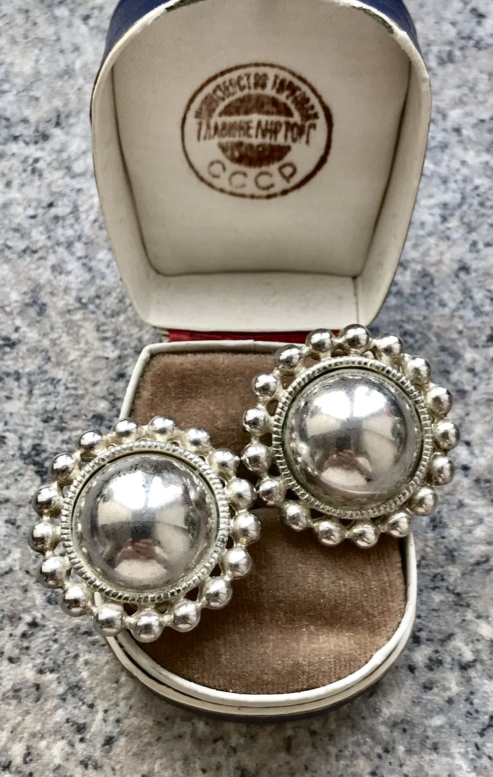 Крупные винтажные клипсы бренда Premier USA (70-е гг.) из металла серебристого тона, имеют купольную форму. Диаметр клипсы 3см., состояние хорошее. Маркированы.