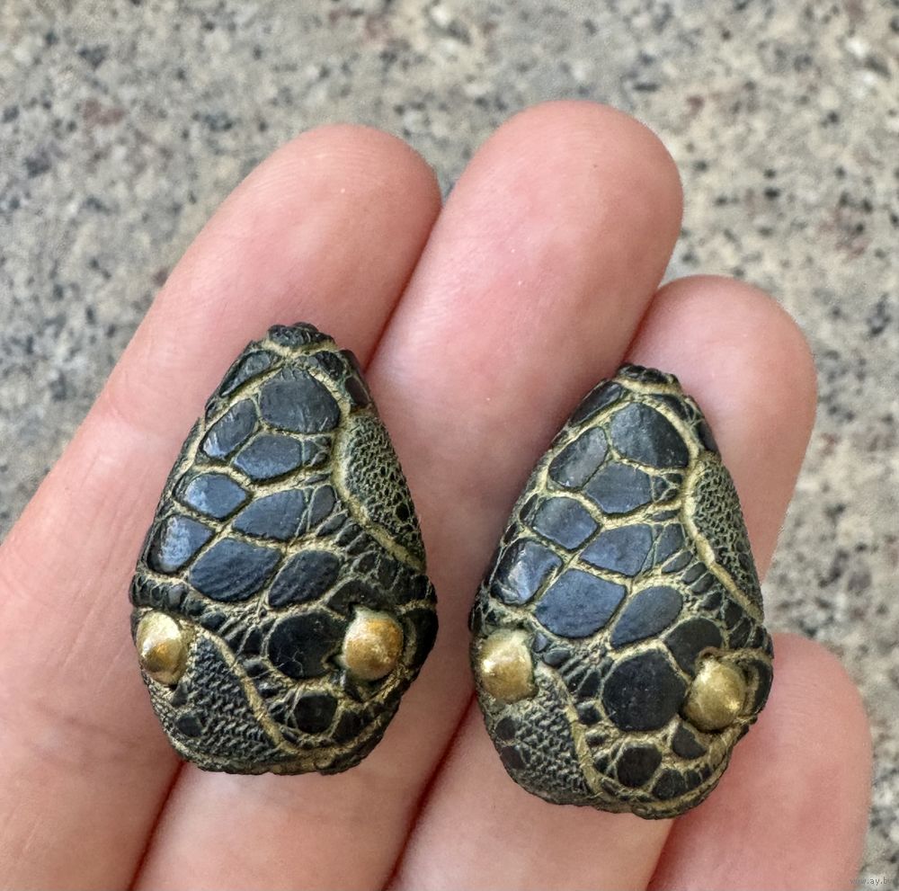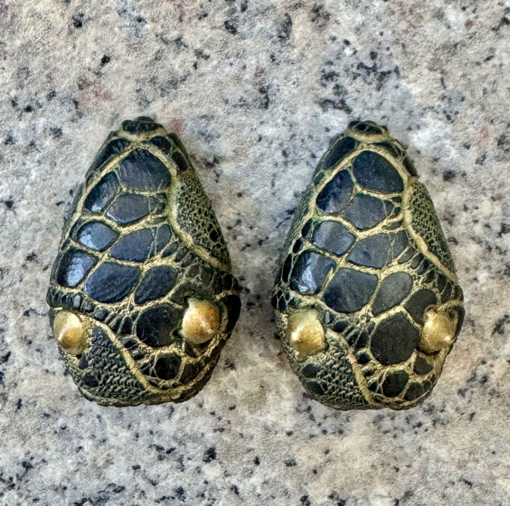 Винтажные клипсы из дерева, глазки змеи сделаны из латуни. Высота 2,8см. Состояние хорошее.