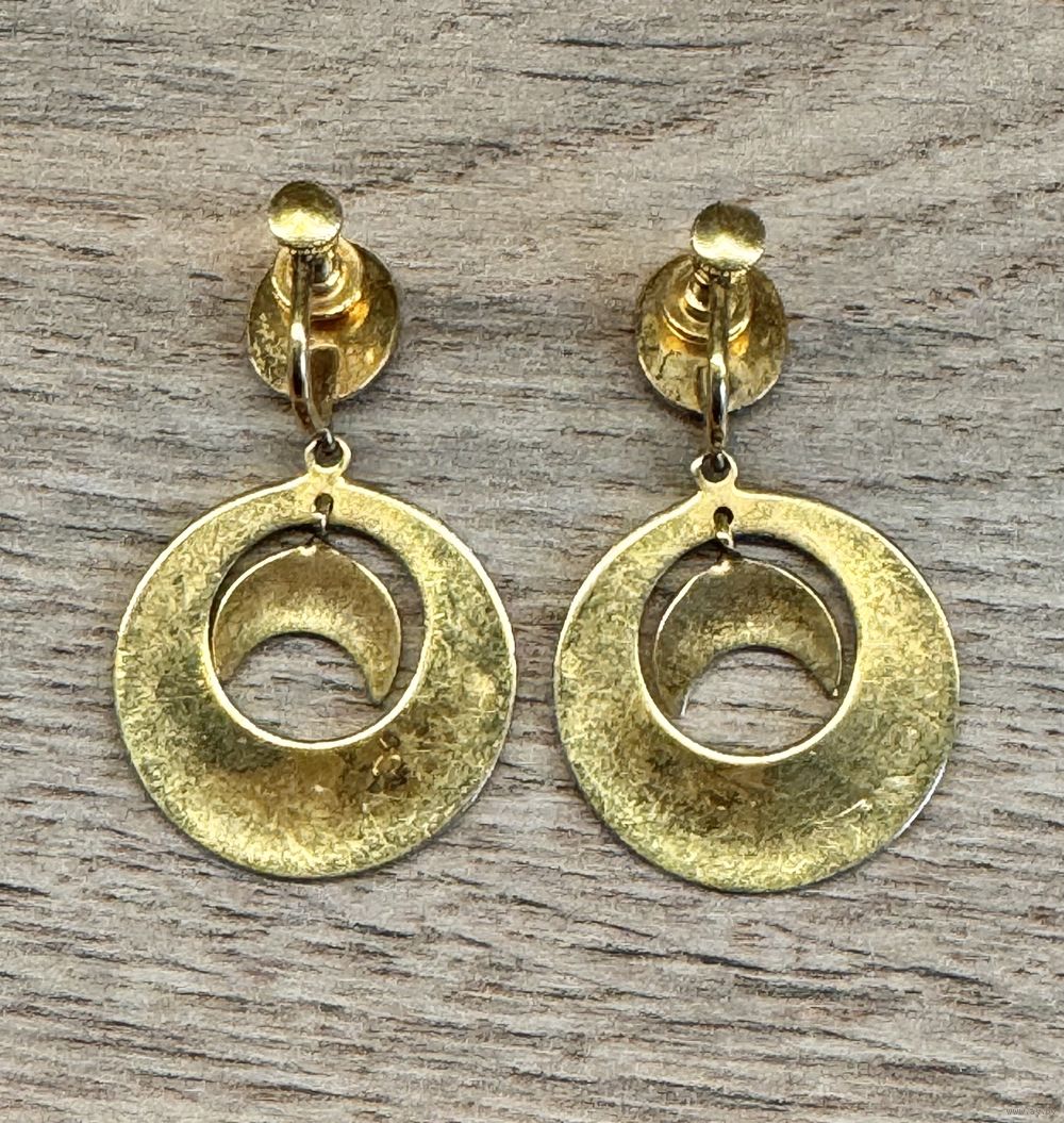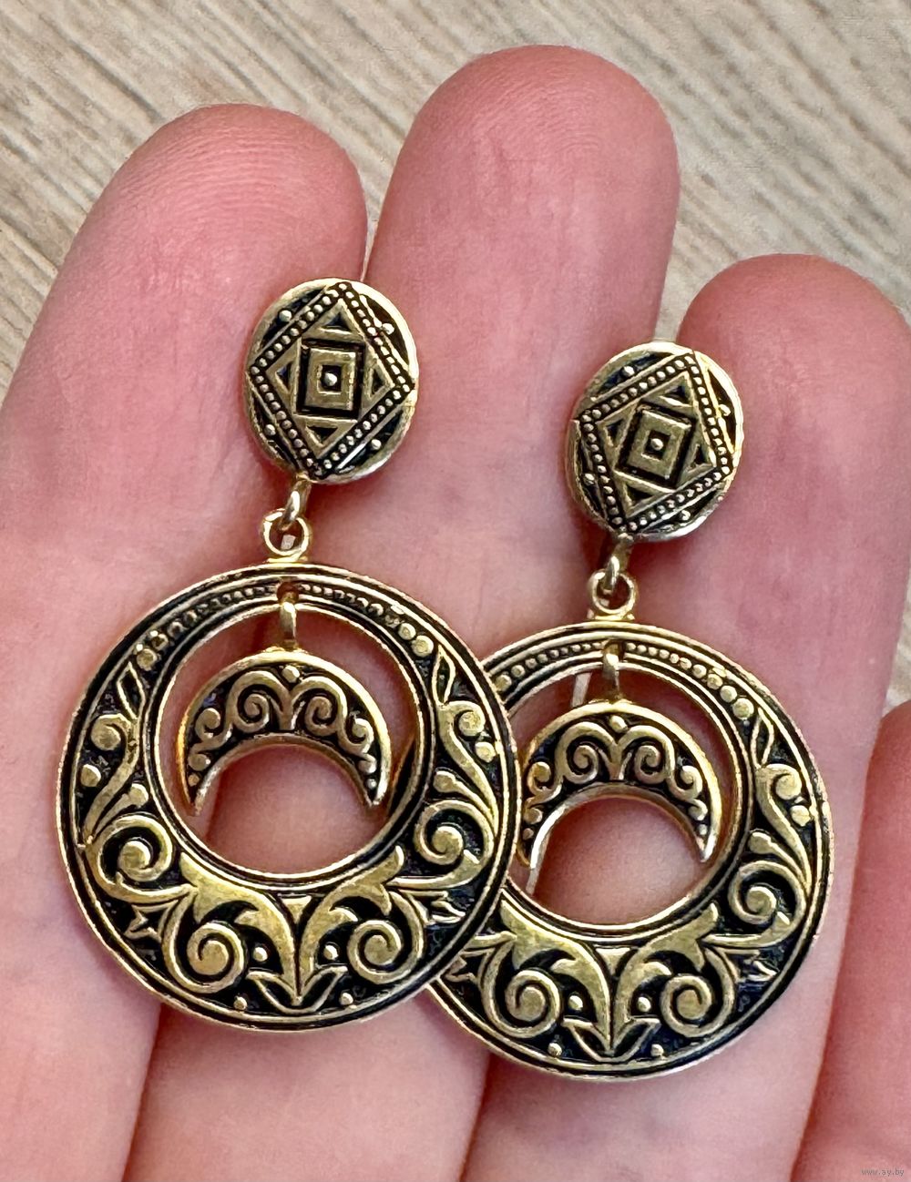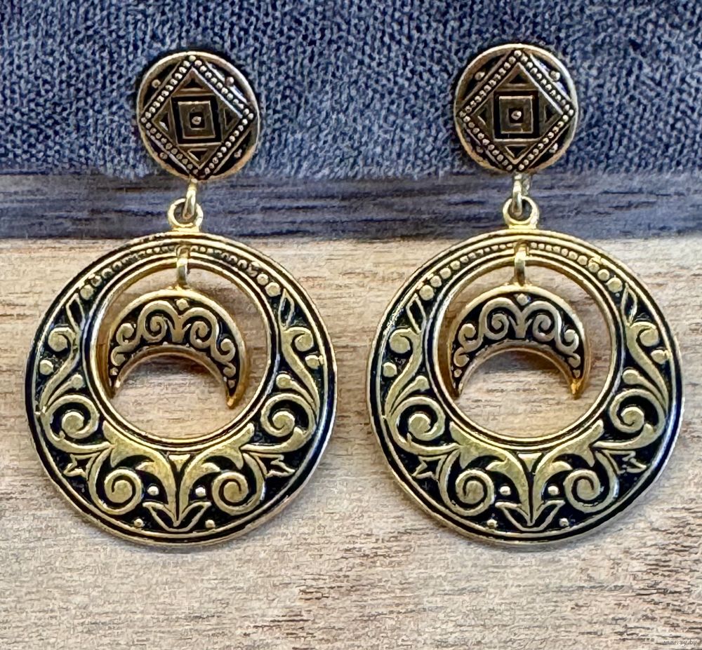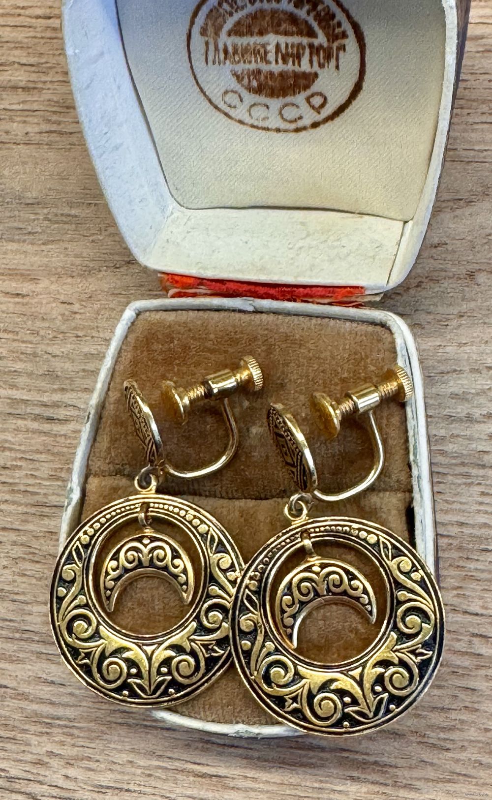 Винтажные клипсы на винтах в технике дамаскин. Высота 3,7см. Диаметр подвески 2,3см. Состояние хорошее.