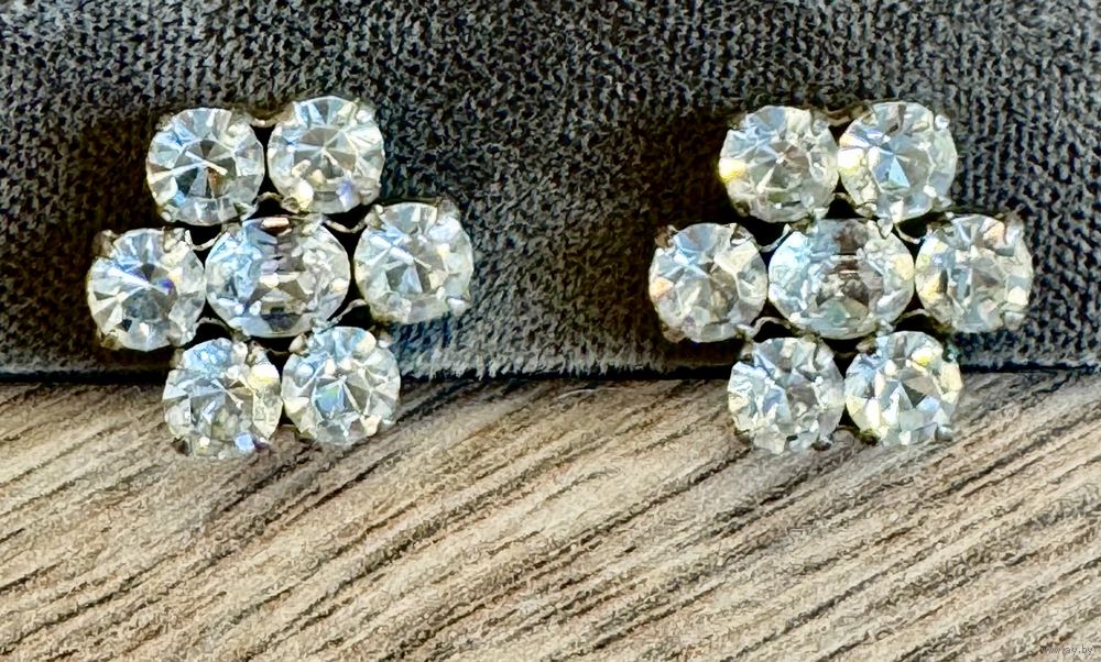 Небольшие винтажные клипсы со вставками из стекла. Диаметр 1,5см. Состояние хорошее.