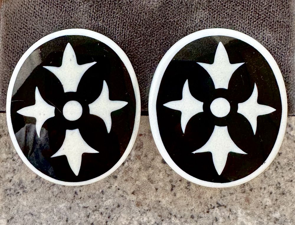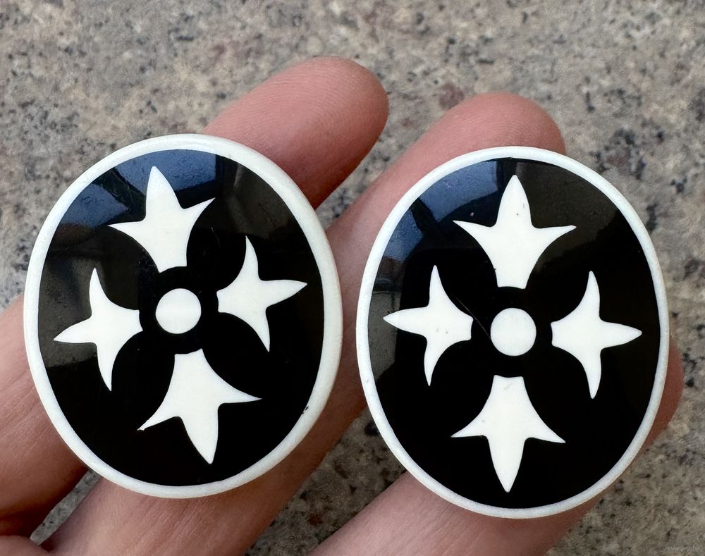 Крупные клипсы из плотного пластика. Размер 3,8х3,3см. Имеются незначительные царапки. Общее состояние хорошее.