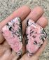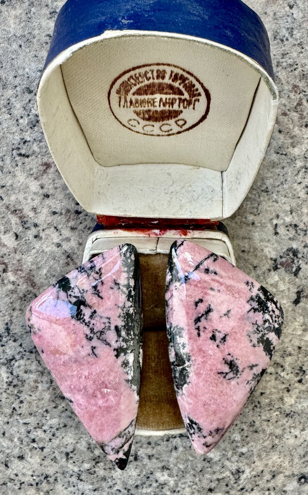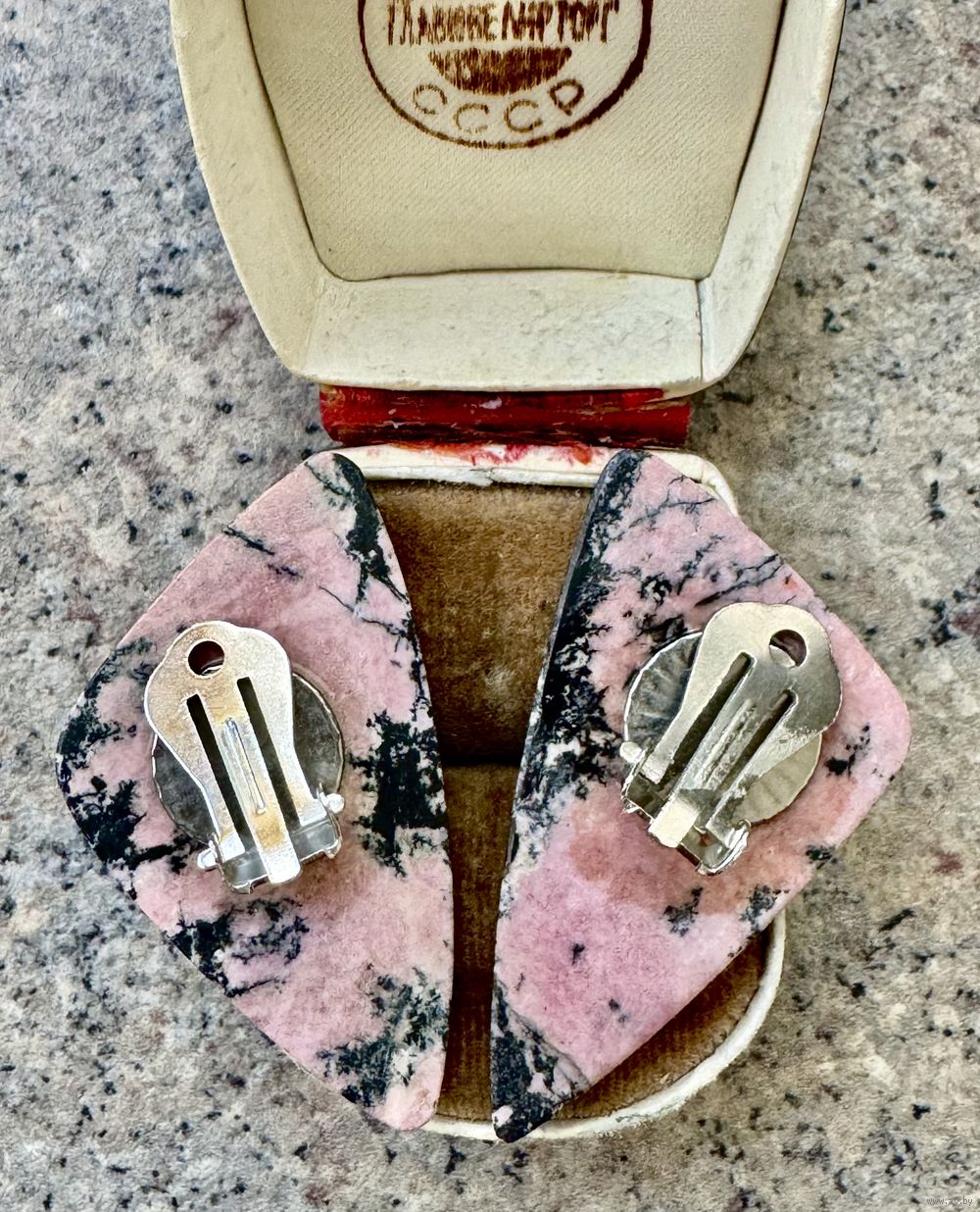 Крупные клипсы из камня родонит. Размер одной 3х4,7х3,7см., размер второй 2,8х4,7х4см. Состояние хорошее.