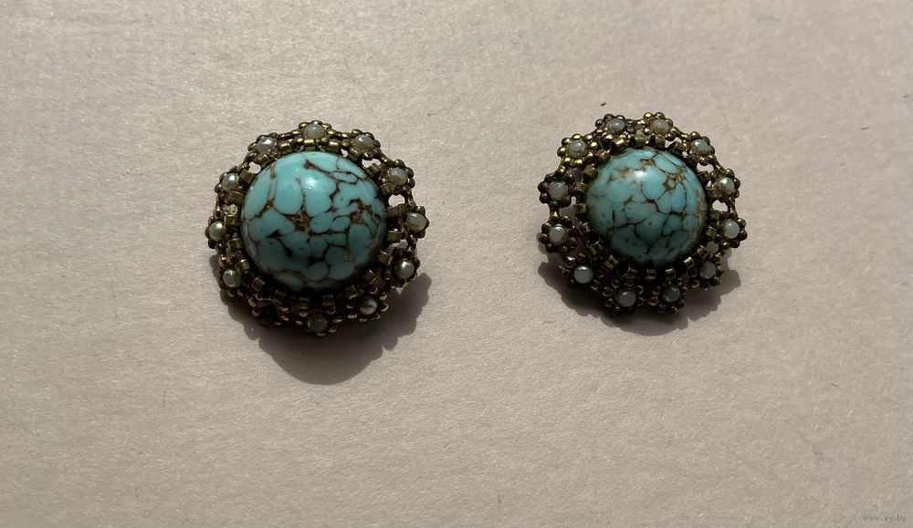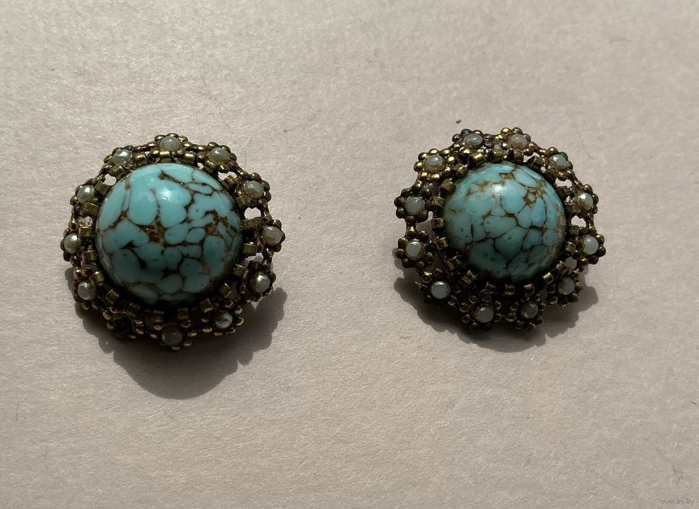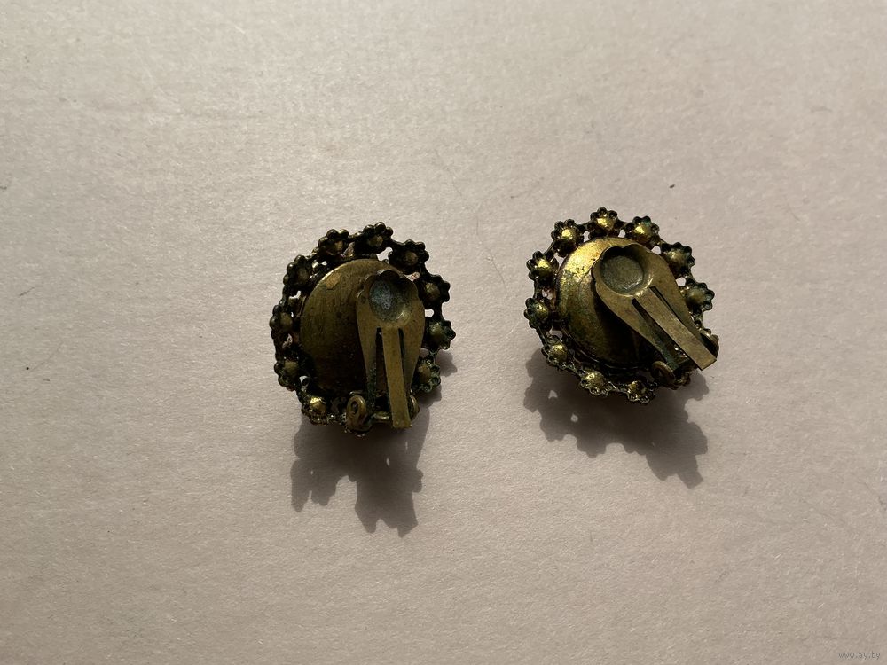 Старинные клипсы , вставка кабошоны Пекинское стекло и мелкие под жемчуг, одной не хватает, попробую найти , есть клеймо, диаметр 2,5 см
