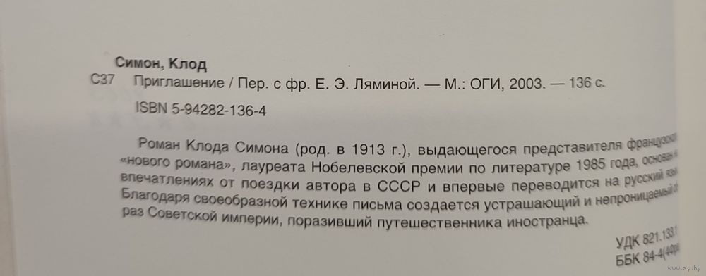 Роман Клода Симона, выдающегося представителя французского "нового романа", лауреата Нобелевской премии по литературе 1985 года, основан на впечатлениях от поездки автора в СССР и впервые переводится на русский язык. Благодаря своеобразной технике письма создается устрашающий и непроницаемый образ Советской империи, поразивший путешественника иностранца.
