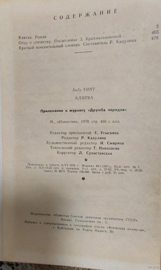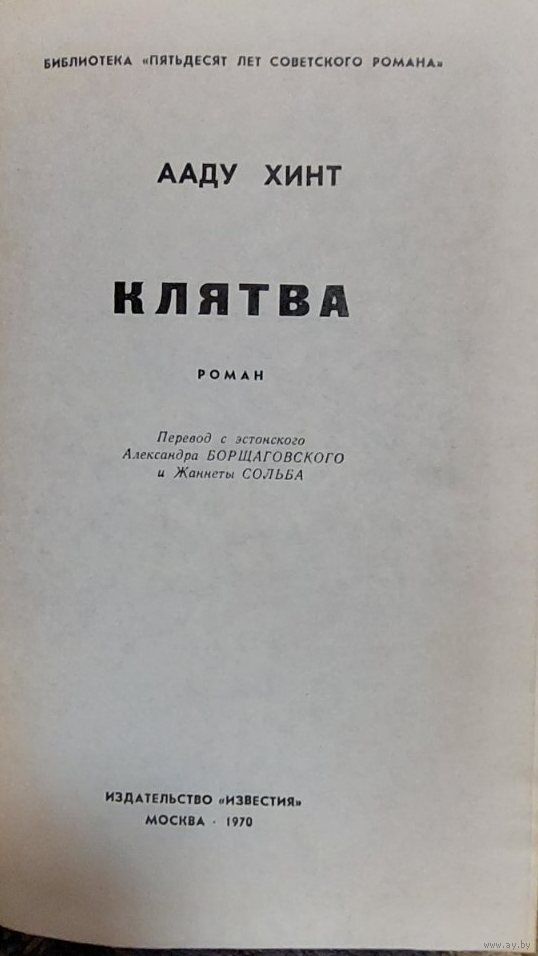 24. КЛЯТВА А. Хинт. Роман, пер. с эстон. Приложение к журналу "Дружба народов", Известия. 1970, 480 с., с ил.