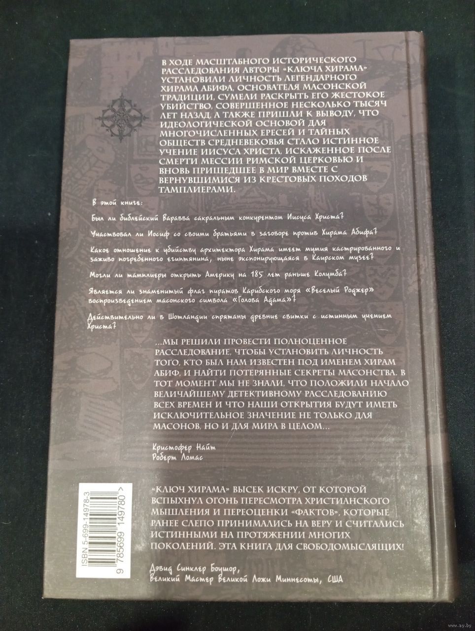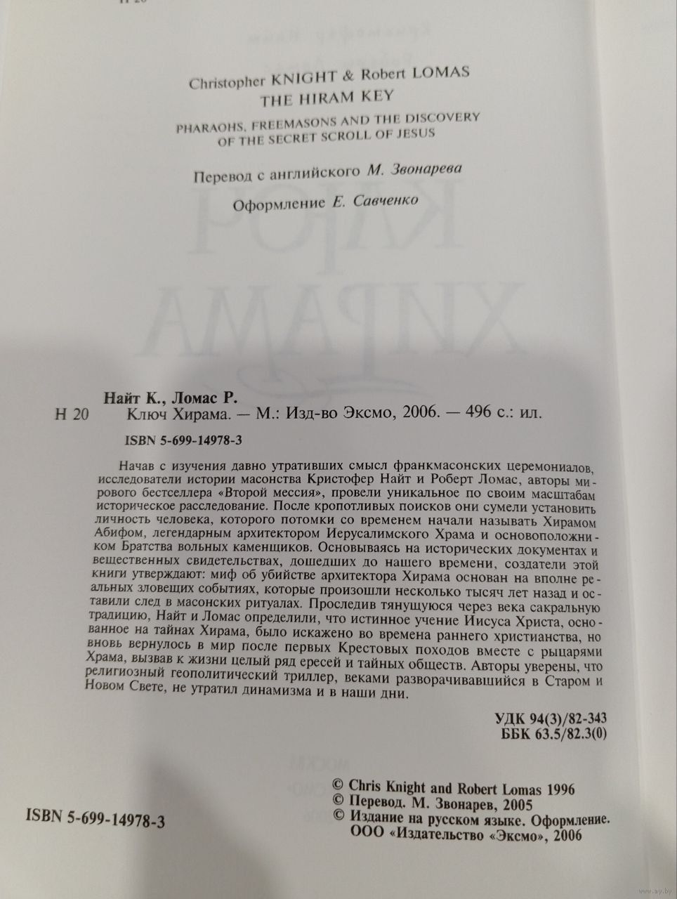 Известный бестселлер в жанре исторического расследования. Авторы, изучая масонские ритуалы, провели уникальное расследование, чтобы найти реального человека за легендой об архитекторе Хираме — основателе Братства вольных каменщиков.