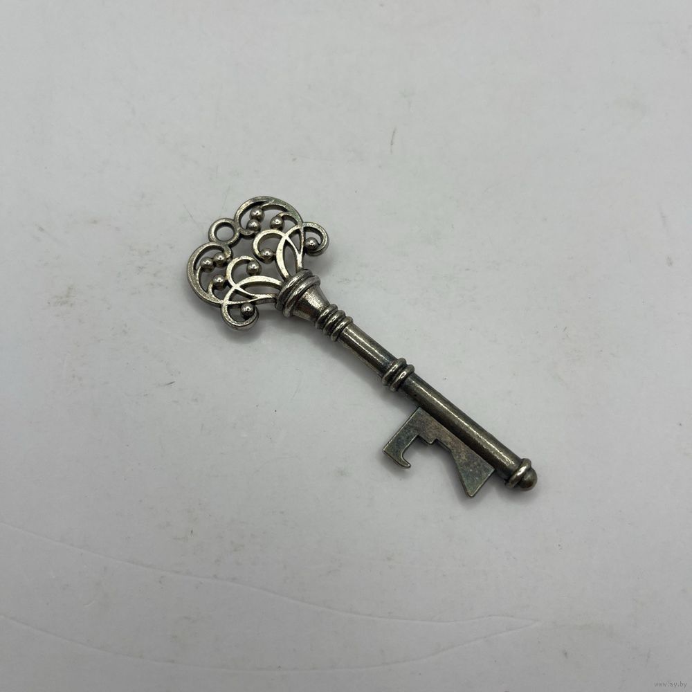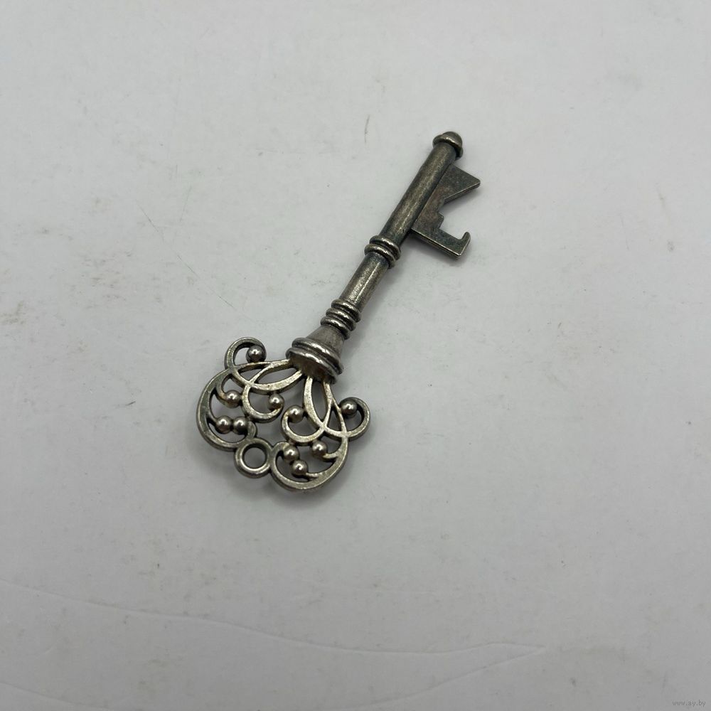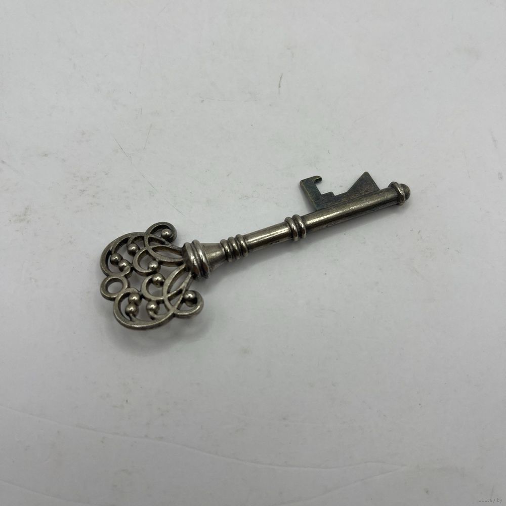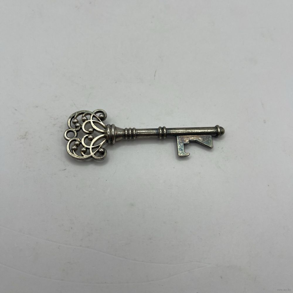 Винтажный посеребренный ключ для мебельного замка с декоративной фигурной головкой. Италия. 1950-е г.г. Длина 8 см. Естественная патина.