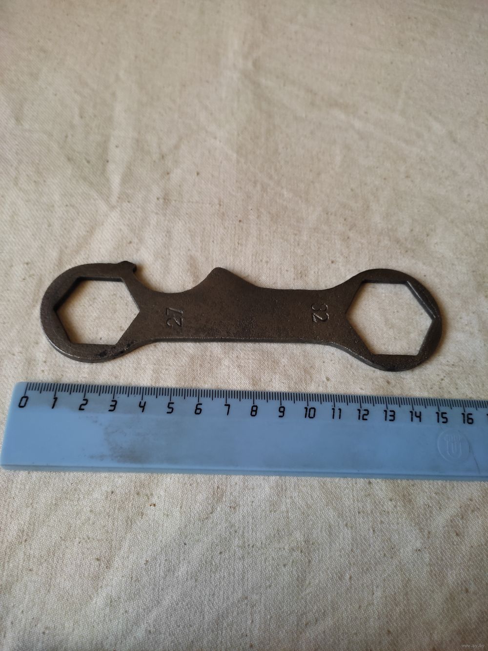 Ключ мотоциклетный 27х32, СССР. Полная очистка и реставрация , отличное состояние. Длина - 15,8 см , вес - 90 гр. Высылаю : Белпочта , Европочта.