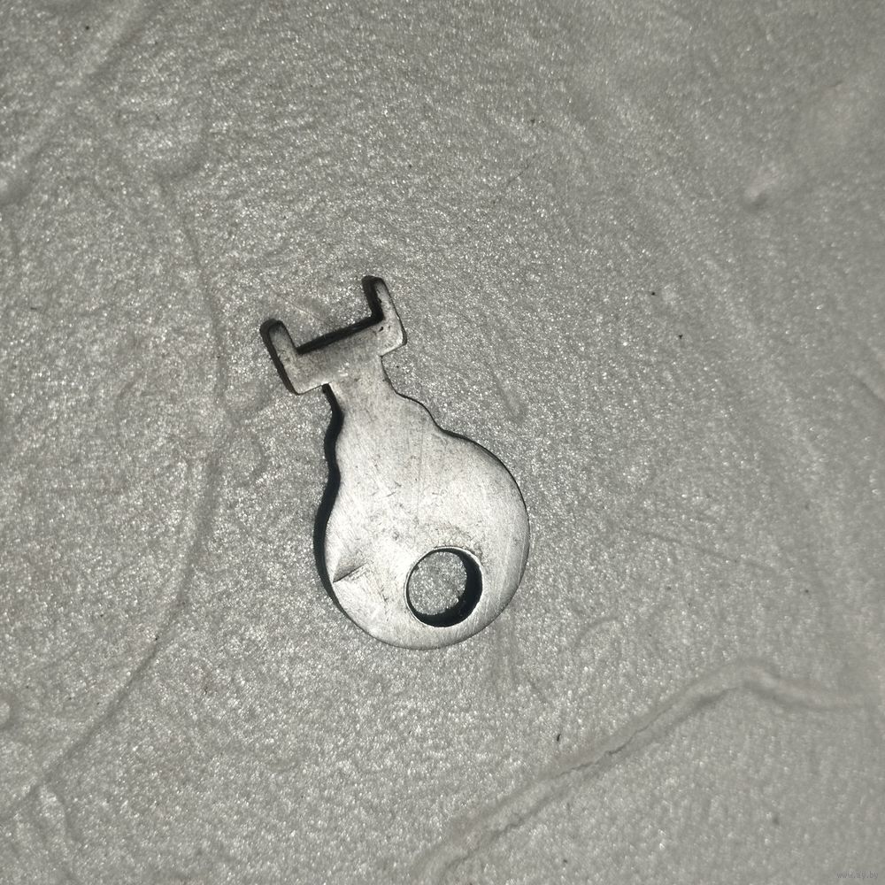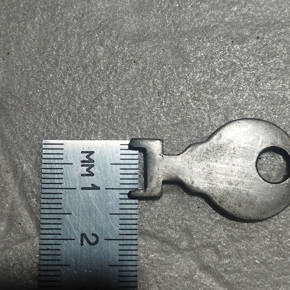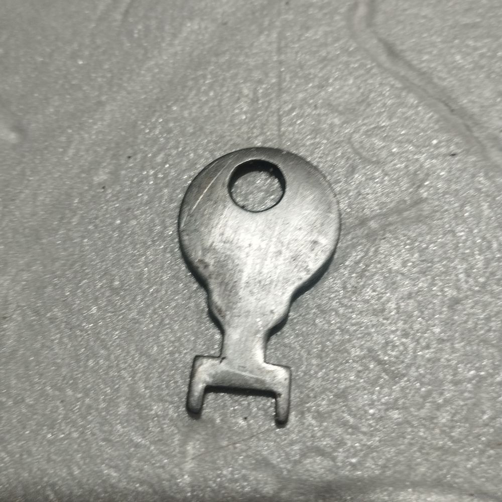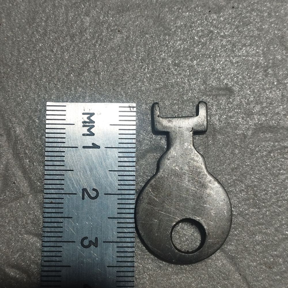 ключ от замка, вероятно, от велосипедного или мотоциклетного дискового замка. предназначен для работы с замком, который использует штифтовой механизм. Верхняя часть ключа, похожая на вилку, взаимодействует с внутренней частью замка, чтобы позволить ему вращаться.