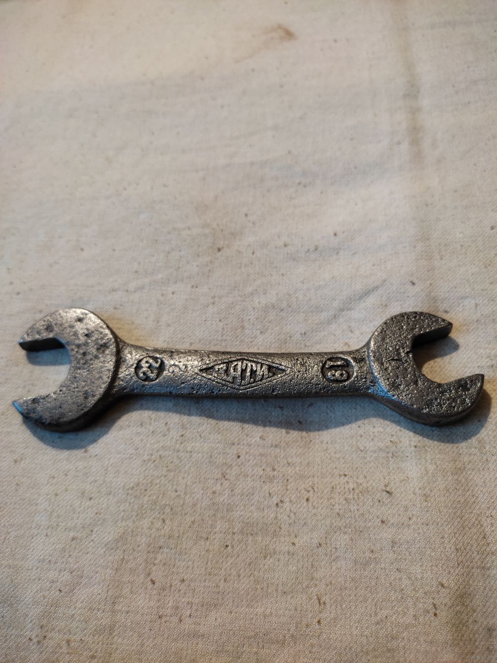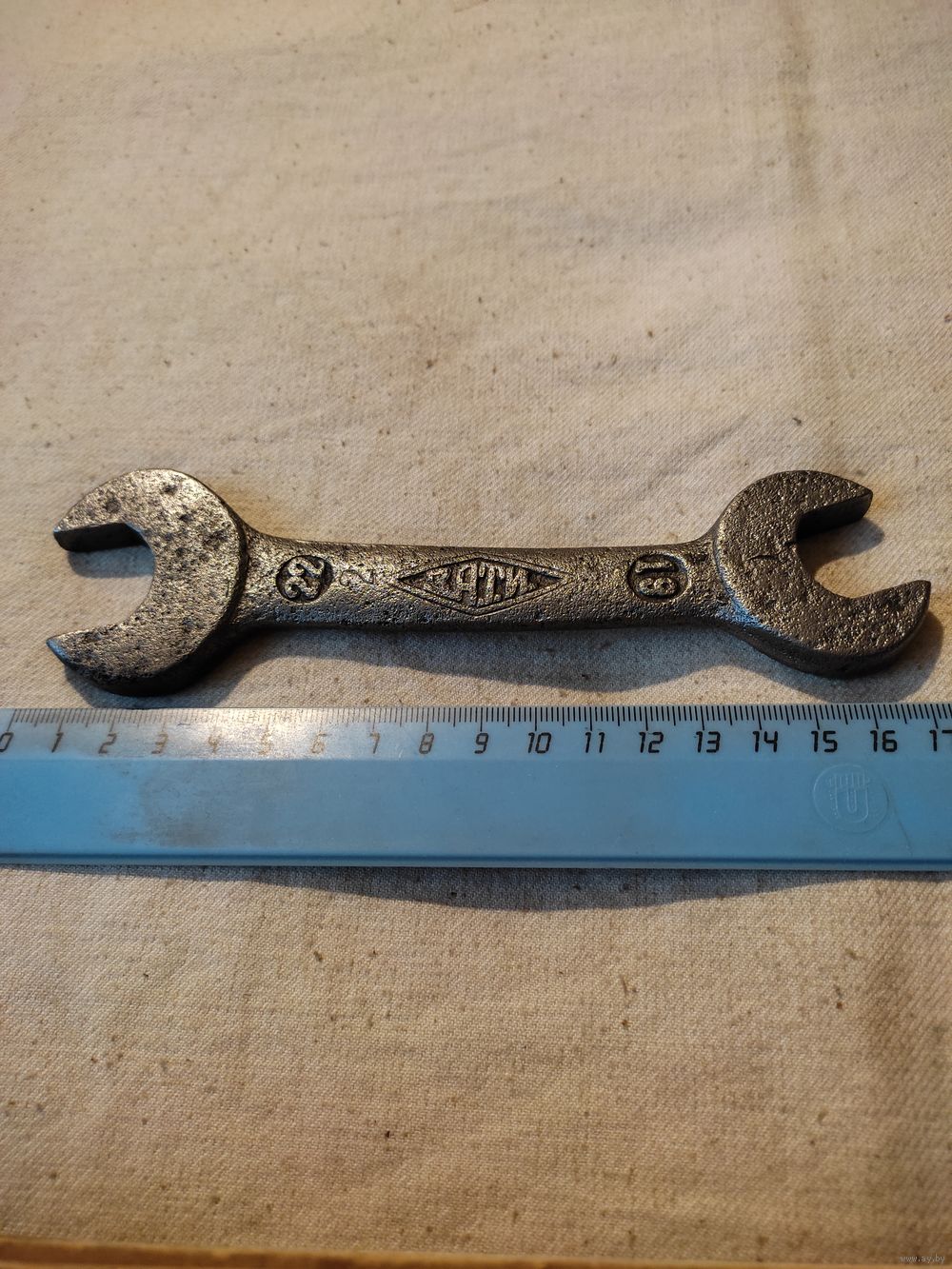 Ключ рожковый 19х22 , З.А.Т.И. - Завод автотракторного инструмента ( г. Павлово-на-Оке , основан в 1931 г , это первое клеймо - " вытянутый ромб " ). Полная очистка и реставрация. Длина - 16,5 см , вес - 227 гр. Высылаю : Белпочта , Европочта.