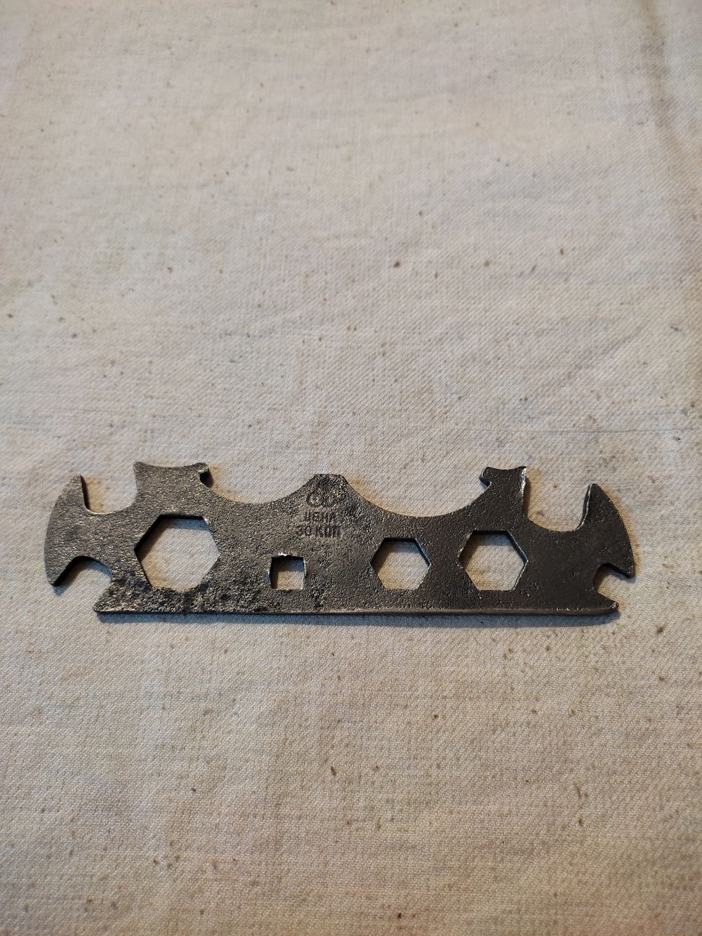 Ключ велосипедный , семейный. Полная очистка и реставрация. Клеймо - не знаю , не определил ( может кто подскажет ? ). Длина - 14 см , вес - 71 гр. Высылаю : Белпочта , Европочта.