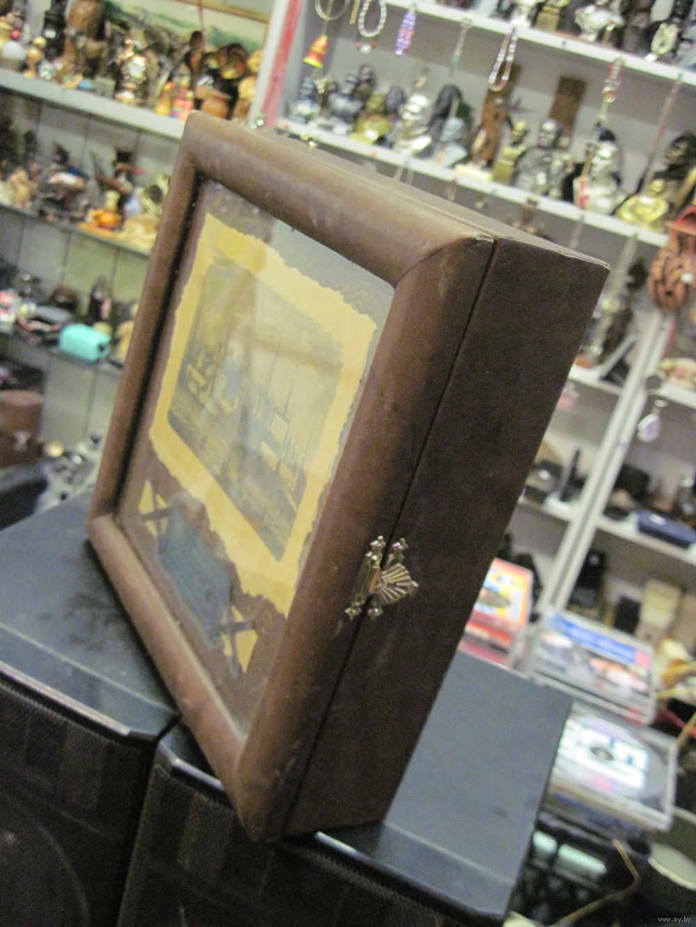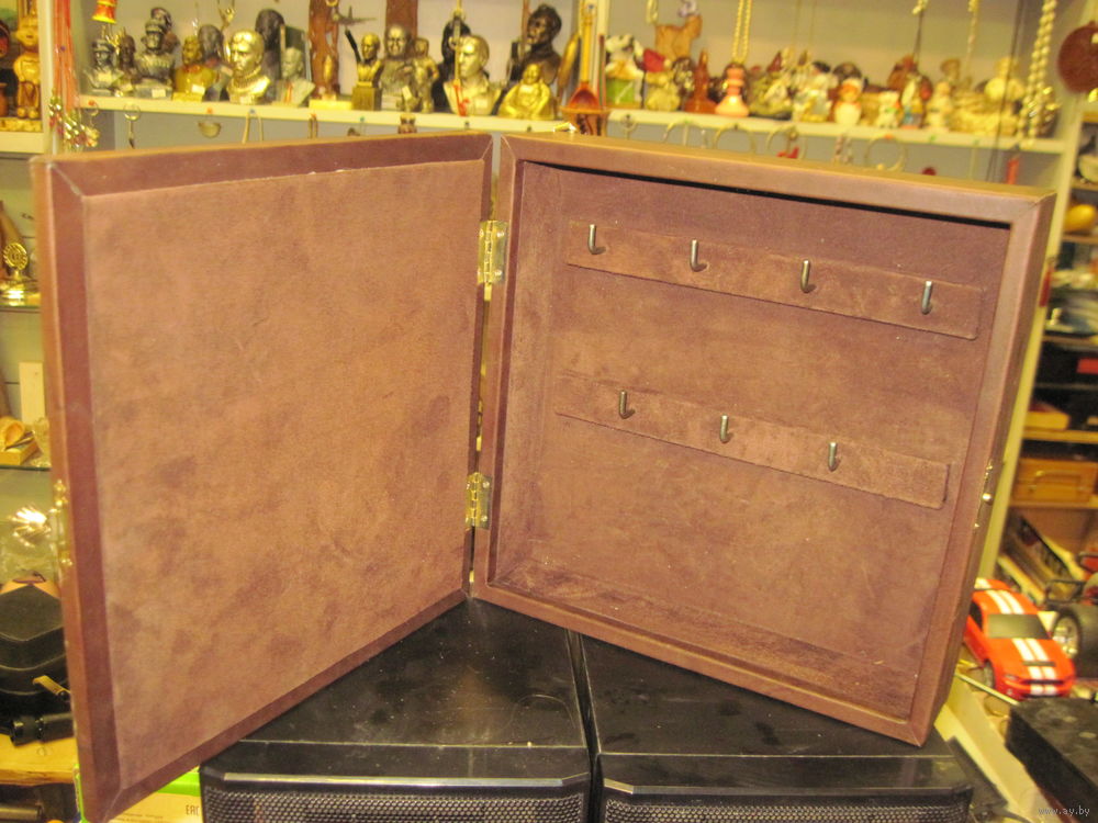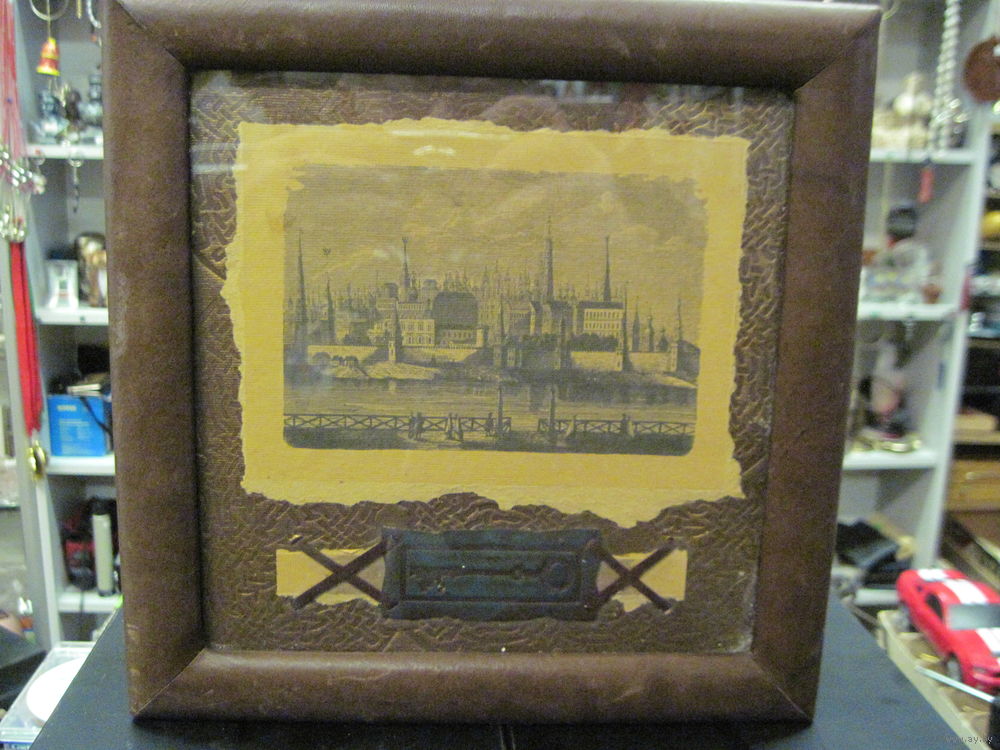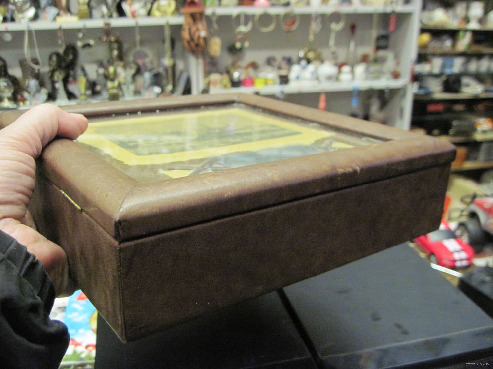 | Кожа, дерево, металл, стекло, картон. 24х24х6 см. | |