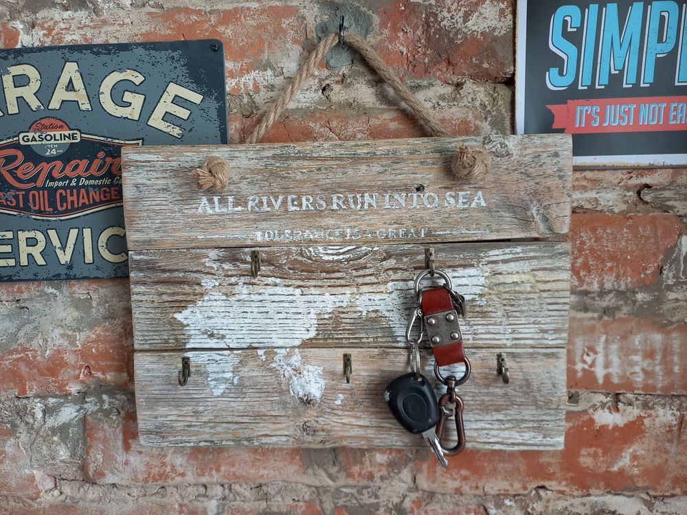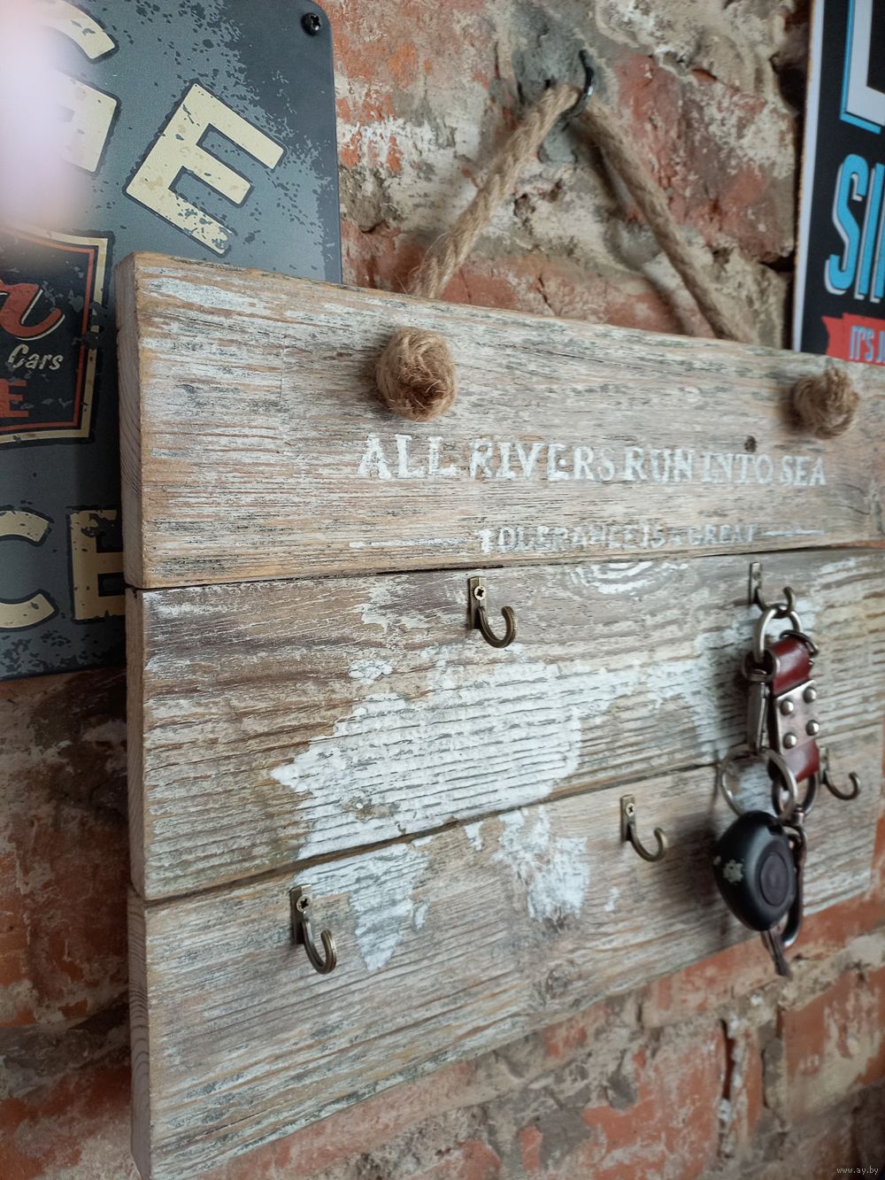 Ключница из амбарной доски на 5 крючков, размер 34 х 24 см.
