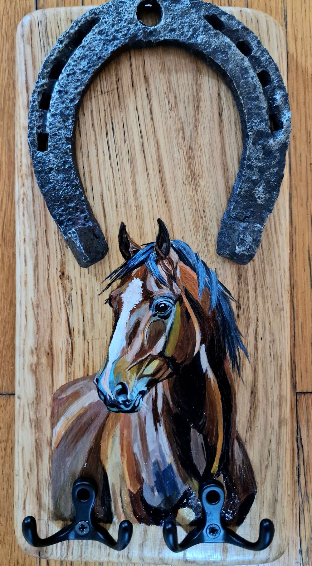Ключница "Подкова" на дубовой доске,масло.