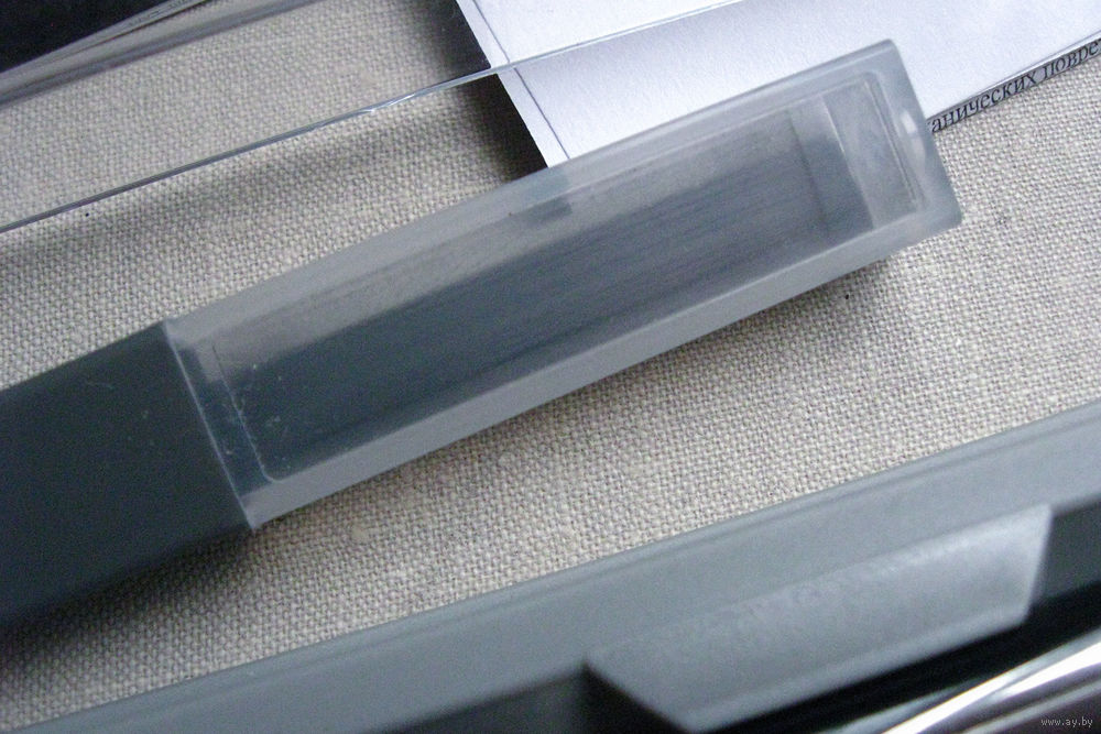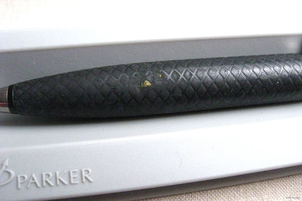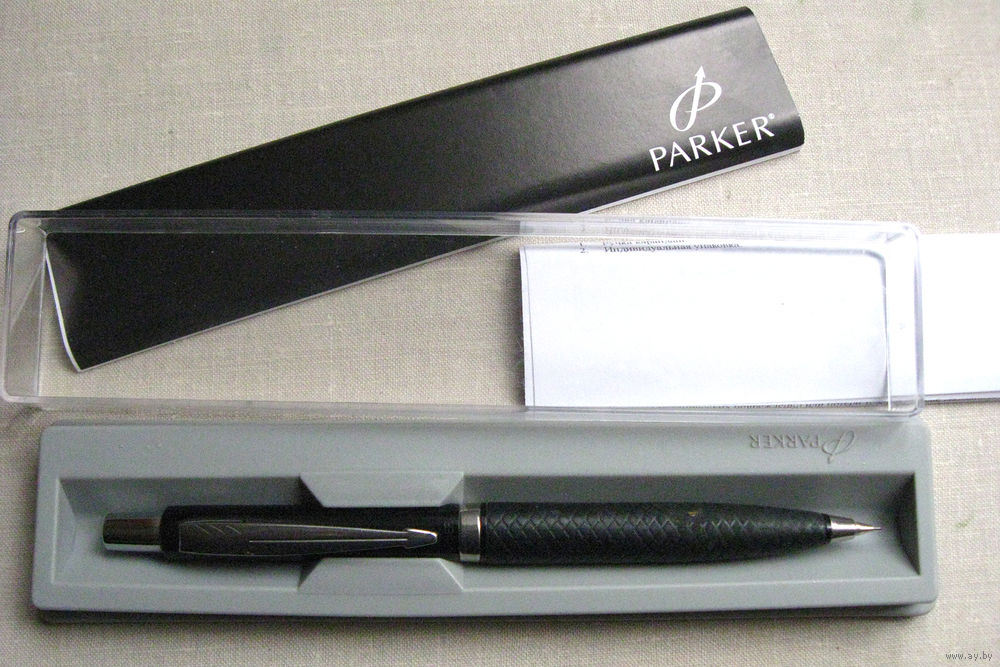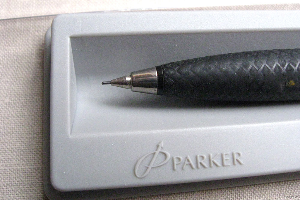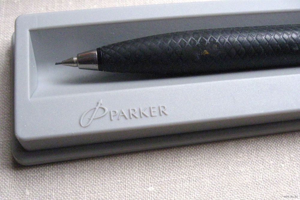 КН 01 Карандаш автоматический Parker Made in UK Паркер Производство Великобритания Оригинал Винтаж Конец 1990-х – начало 2000-х Отличное состояние На мягкой части две небольшие желтые точечки краски – от лежавшего рядом с ручкой карандаша В комплекте оригинальный футляр, запасные оригинальные грифели Parker