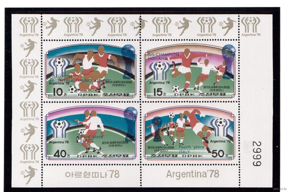 КНДР-1977,(Мих.А1676-А1679) ** , Спорт, ЧМ-1978 Футболу, м/л, Надп.