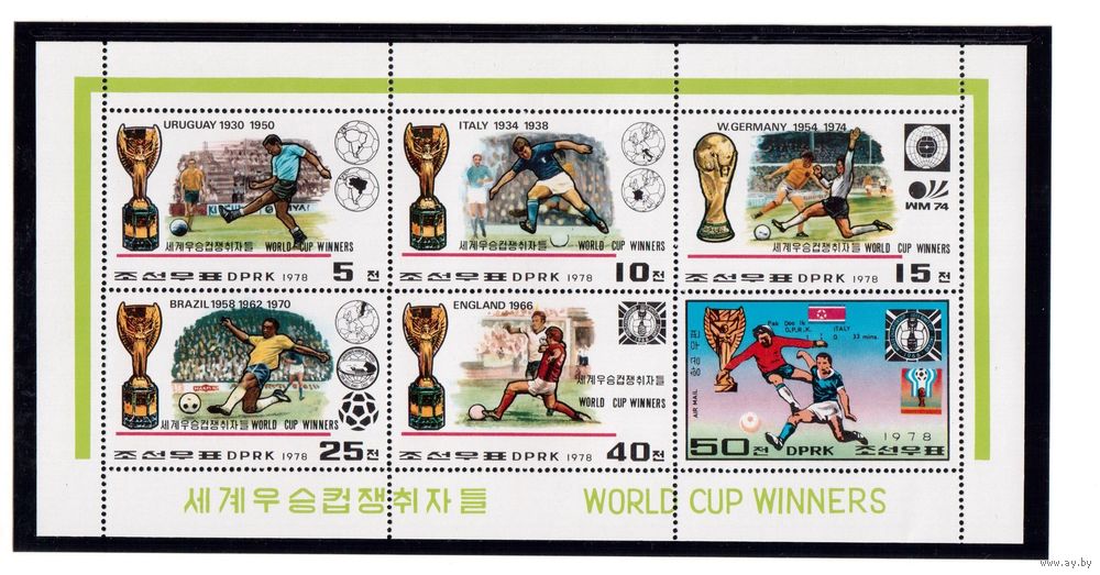 КНДР-1978,(Мих.1747-1753) ** , Спорт, История ЧМ Футболу, м/л,