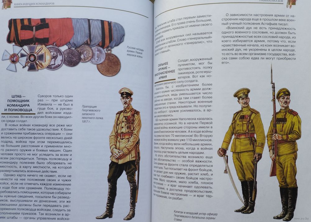 Большой энциклопедический формат. Тираж 5000 экз. 448 стр. Анатолий Васильевич Митяев (1924 — 2008) — российский писатель, сценарист, ответственный секретарь детской газеты «Пионерская правда» (1950—1960), главный редактор детского журнала «Мурзилка» (1960—1972), главный редактор студии «Союзмультфильм». Ко всему, Митяев был обаятельным человеком, от него веяло теплом. Он прошел войну, но сохранил детское восприятие — восторгался простыми вещами и делал постоянные открытия в окружающем мире. Но что особенно важно — открывал в людях то, чего они в себе и не подозревали. Самая тяжелая беда из всех бед, какие бывают, - война. Мы еще не можем сказать: с войнами покончено. И выход для нас один - быть такими сильными, чтобы никто не осмелился напасть на нашу страну, никто не посмел тронуть наших друзей. Какие качества нужны командиру? Узнаешь из этой книги. А воспитать их в себе тебе помогут суворовские и нахимовские училища, военные училища родов войск, служба в армии, военные академии.