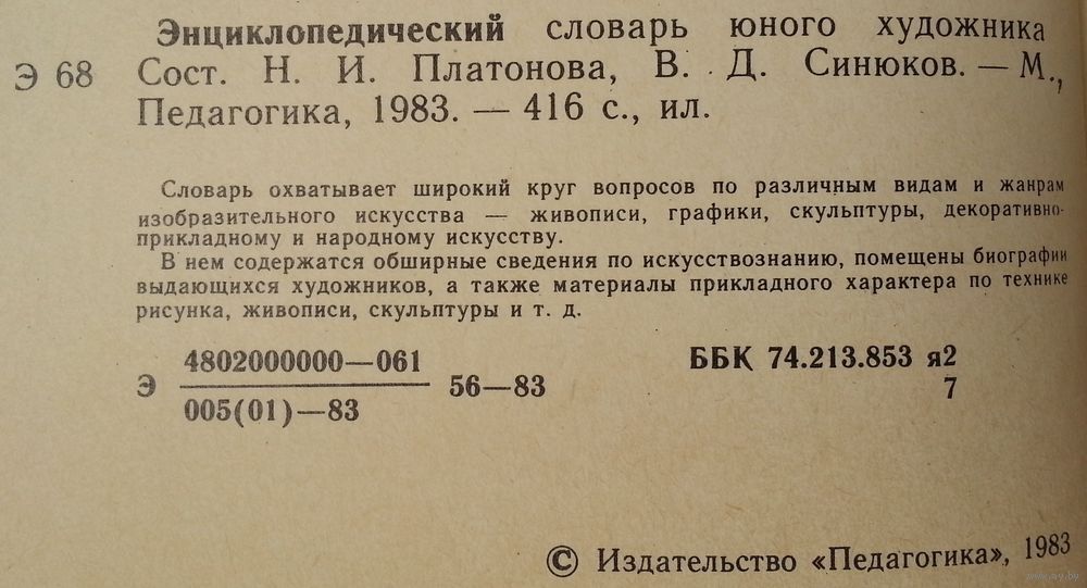 Словарь охватывает широкий круг вопросов по различным видам и жанрам изобразительного искусства - живописи, графики, скульптуры, декоративно-прикладному и народному искусству. В нем содержатся обширные сведения по искусствознанию, помещены биографии выдающихся художников, а также материалы прикладного характера по технике рисунка, живописи, скульптуры. Большой иллюстративный материал .