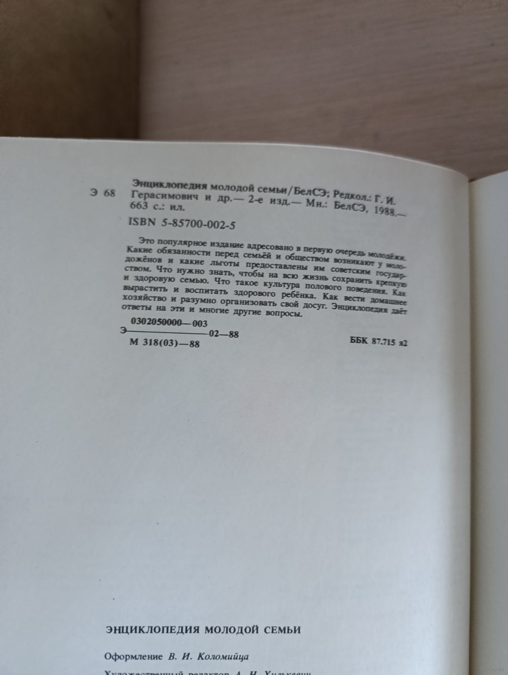 Книга. Энциклопедия молодой семьи. Состояние хорошее страницы все целые.