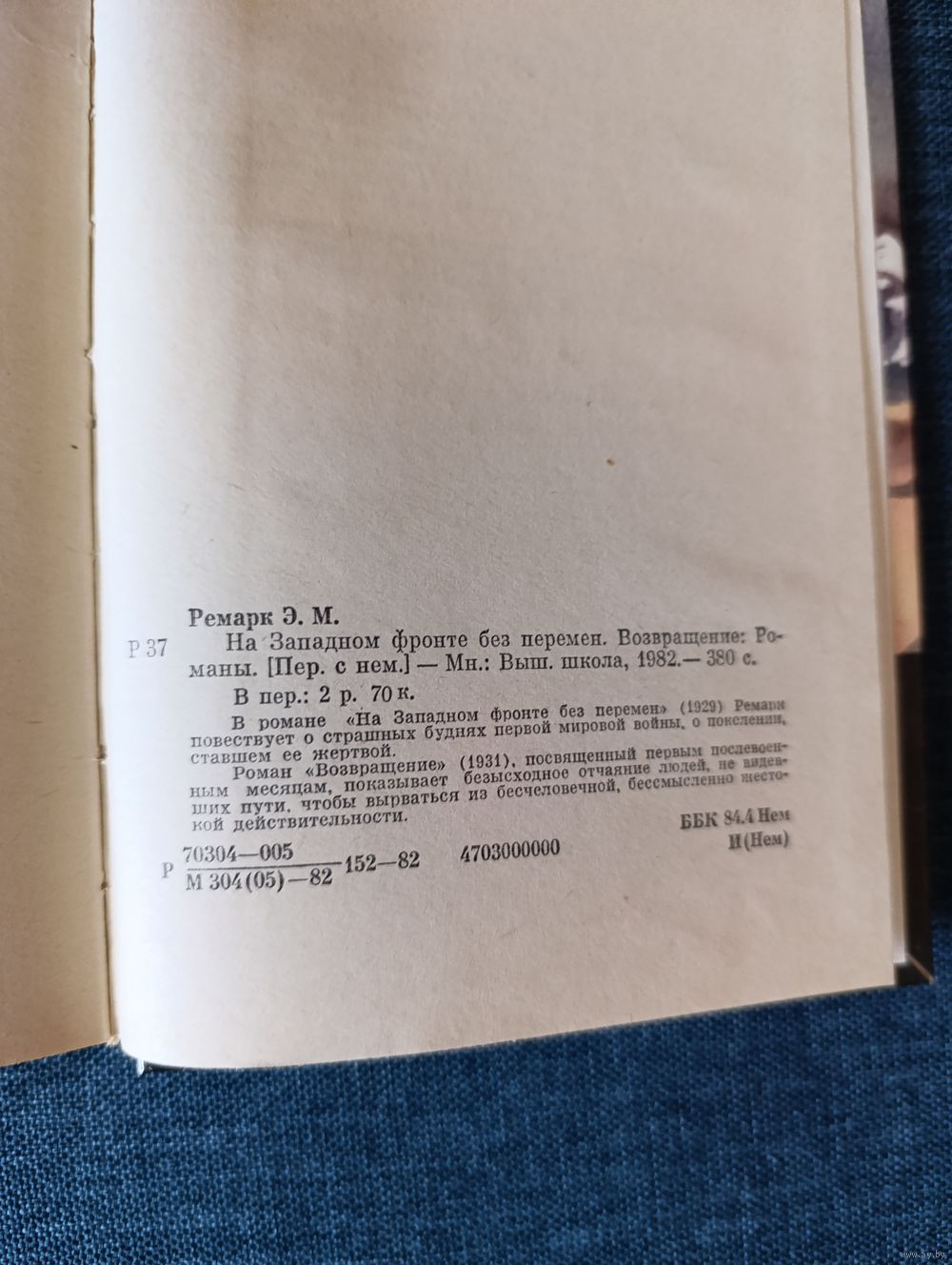 Книга. Роман. Эрих Мария Ремарк. На западном фронте без перемен. Возвращение. Книга в хорошем состоянии все страницы целые не порвоные.