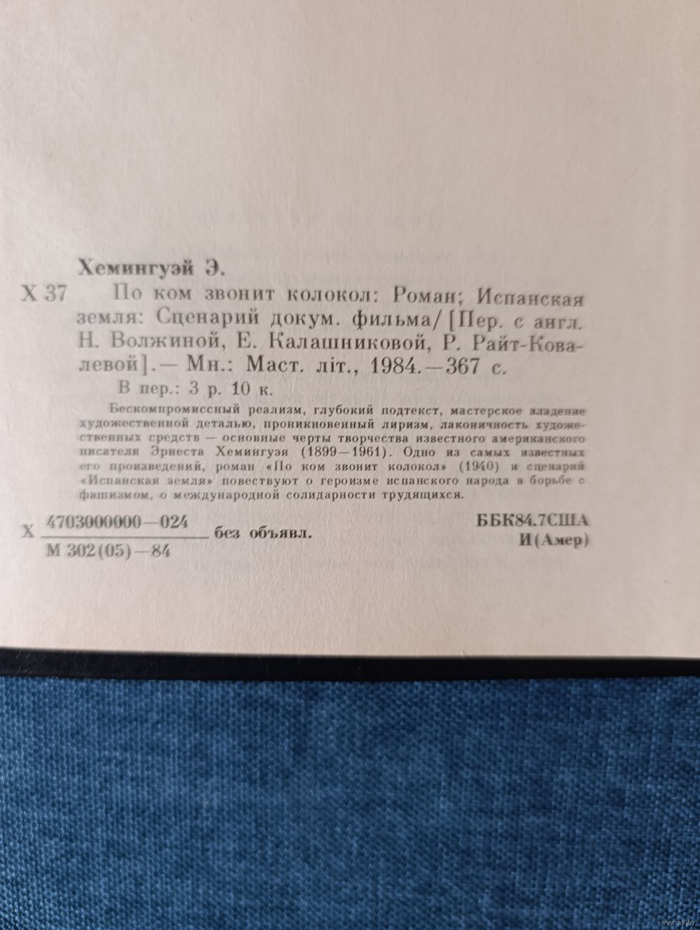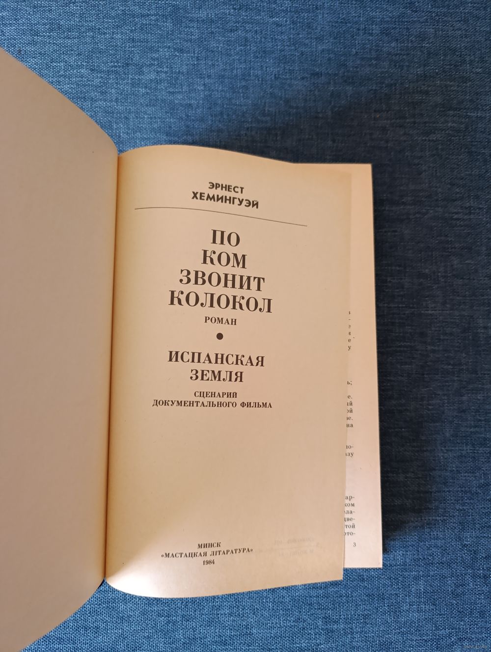 Книга. Эрнест Хемингуэй. " По ком звонит колокол". Роман. Книга в хорошем состоянии все страницы целые не порвоные.
