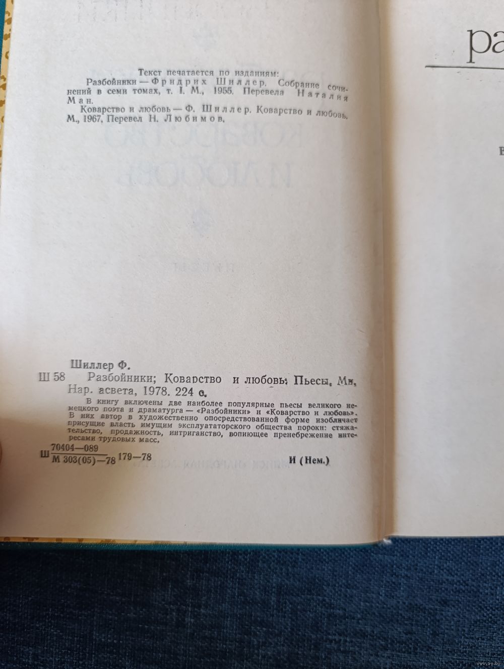 Книга. Ф. ШИЛЛЕР. Пьесы. Разбойники, Коварство и любовь. Книга в хорошем состоянии все страницы целые не порвоные.