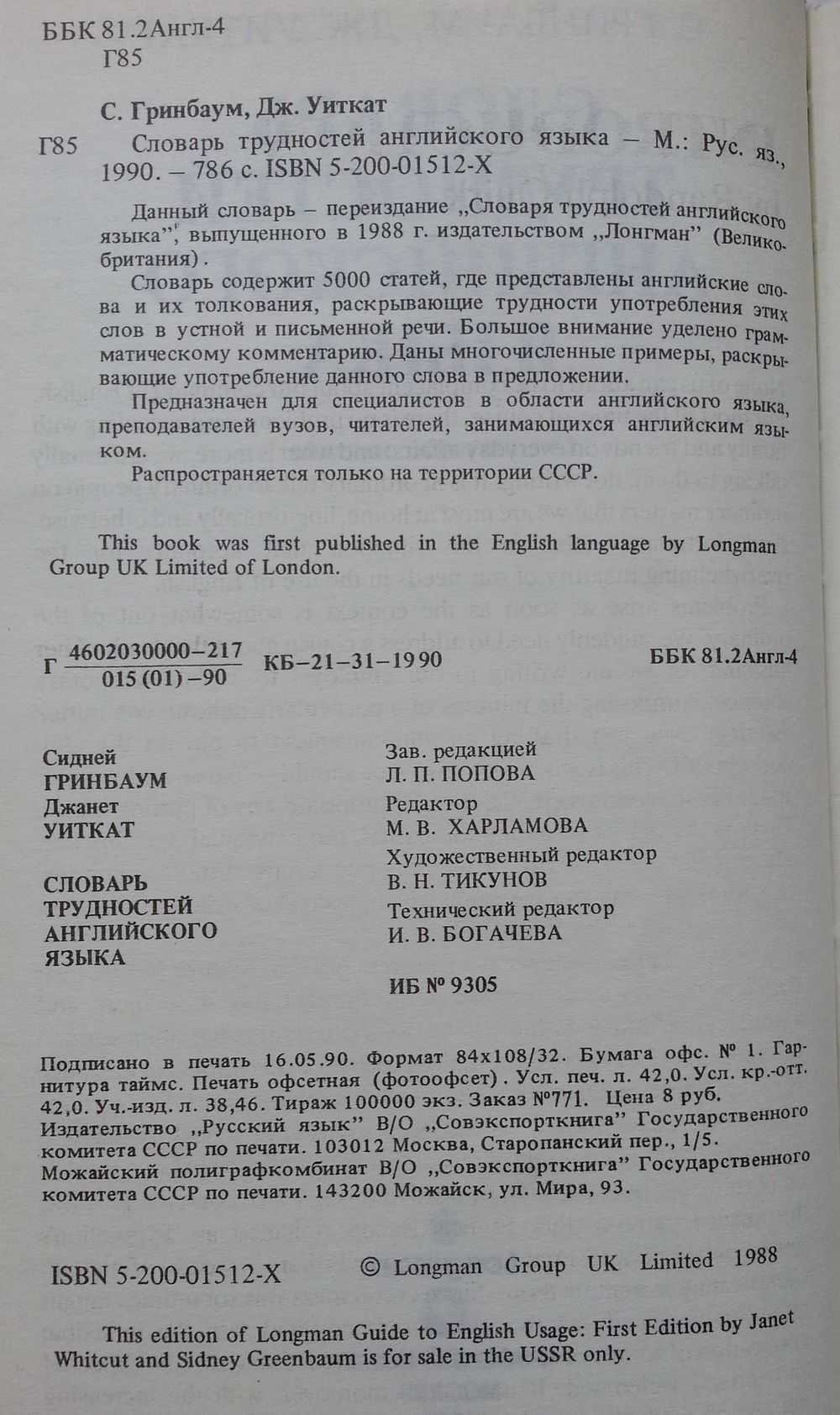 Специальное издание. Сер. *Longman*. М. Русский язык 1990г. 786 с. Твердый переплет, обычный формат.