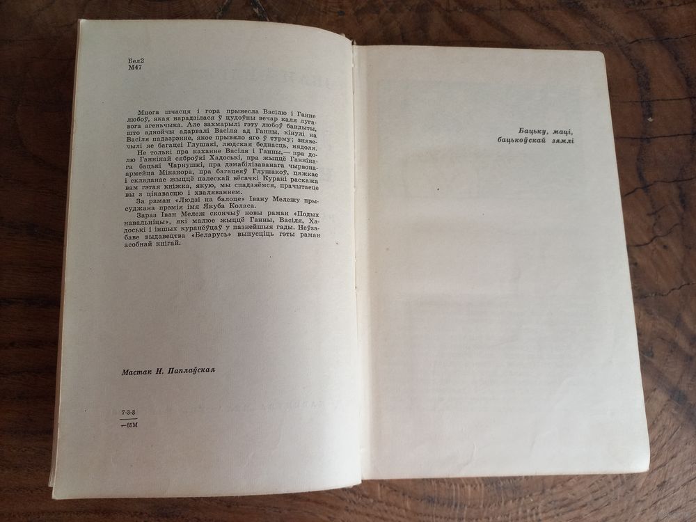 Книга И. Мележ "Люди на болоте" на белорусском языке, 1965 год, издательство "Беларусь", тираж 10 000 экземпляров.