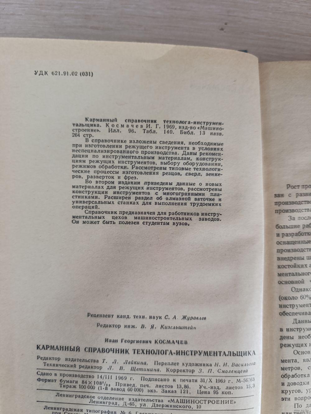 Книга. И. Г. Космачев. " Карманный справочник технолога - инструментальщика. Книга в хорошем состоянии все страницы целые не порвоные.