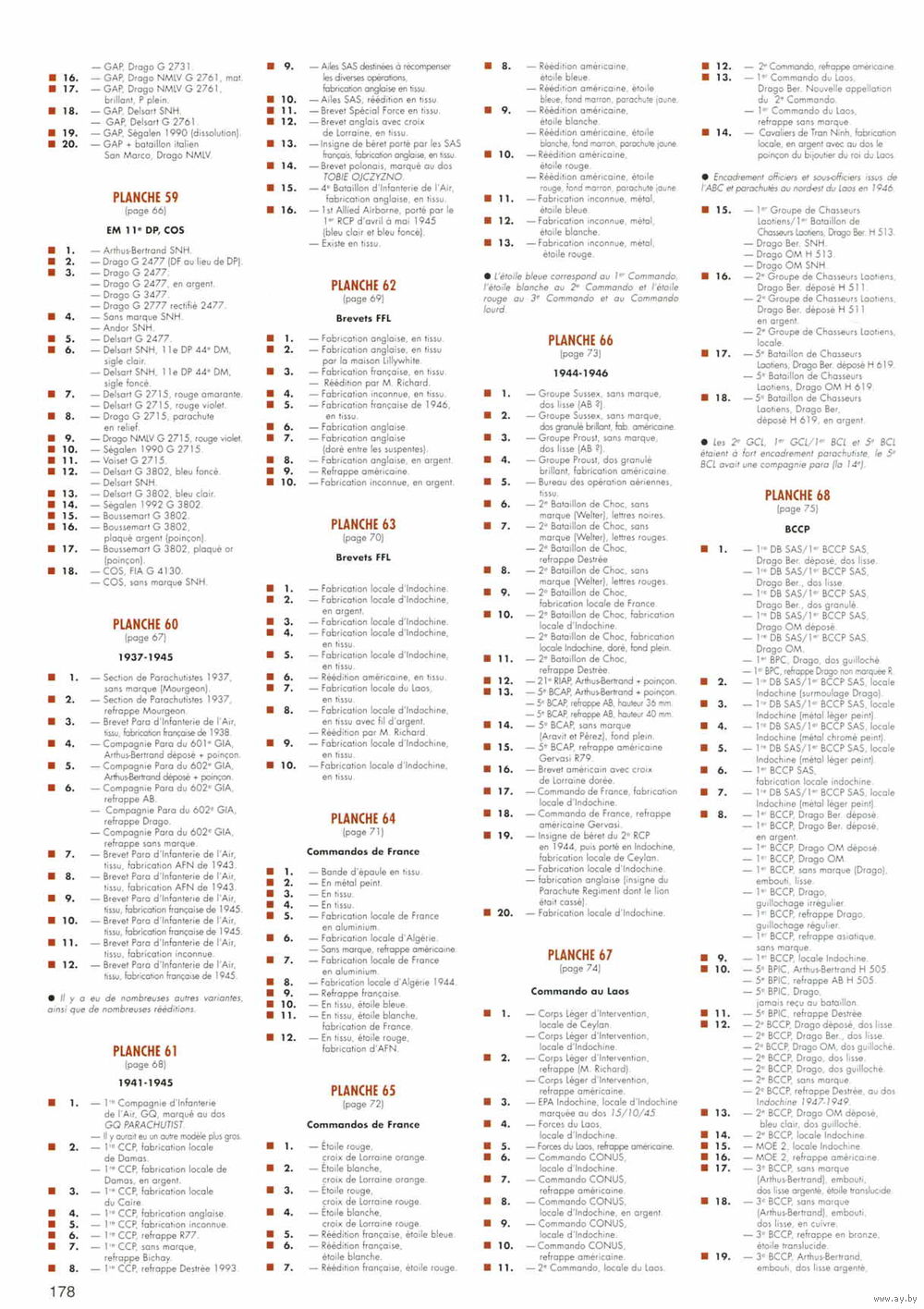 В каталоге представлены знаки парашютно-десантных подразделений Франции. На сегодняшний момент это самый полный каталог знаков (около 3000) с описанием принадлежности.