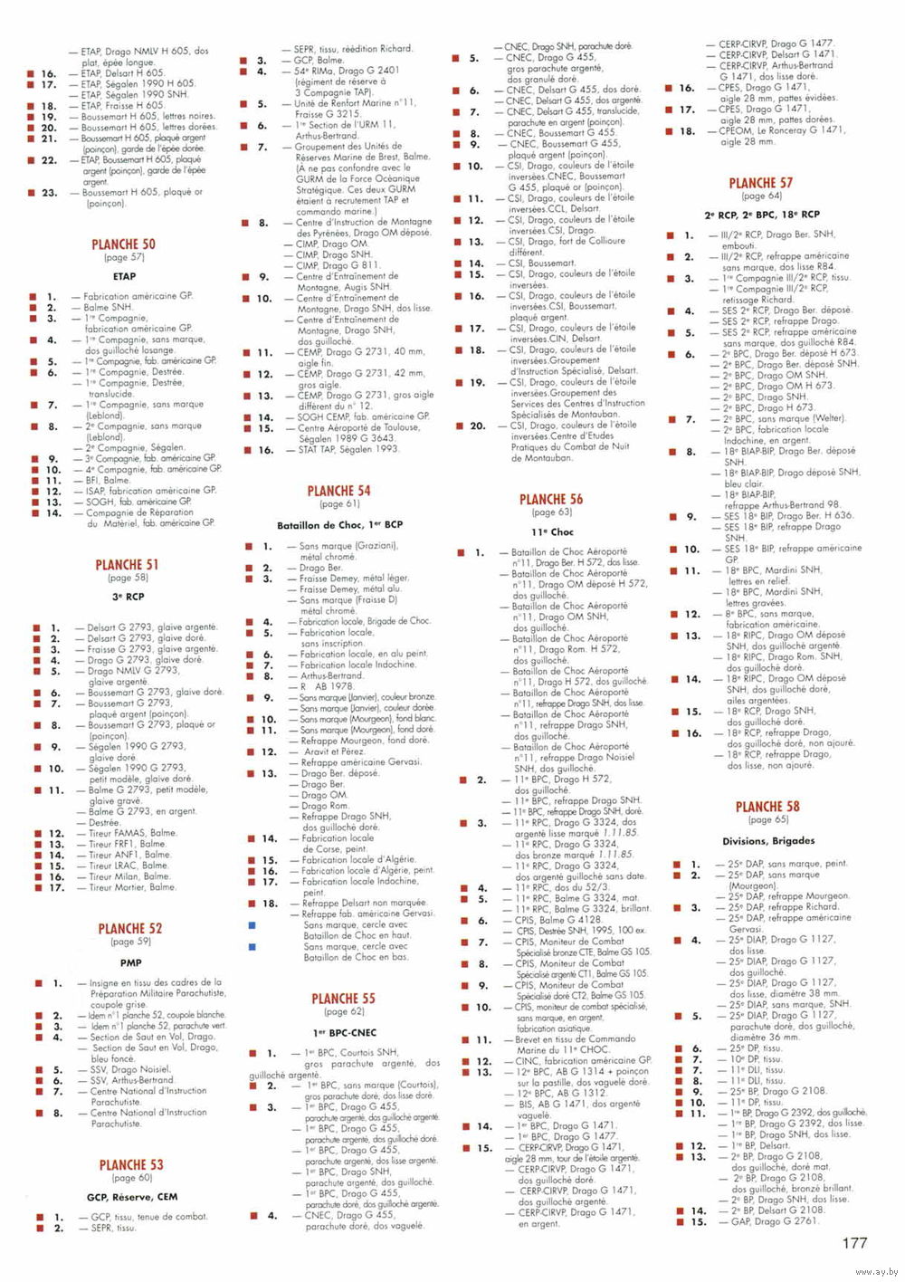 В каталоге представлены знаки парашютно-десантных подразделений Франции. На сегодняшний момент это самый полный каталог знаков (около 3000) с описанием принадлежности.