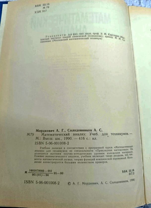 Учебник написан в соответствии с программой курса «Математический анализ» для техников по специальности «Прикладная математика». Он отличается высоким научно-методическим уровнем изложения материала.