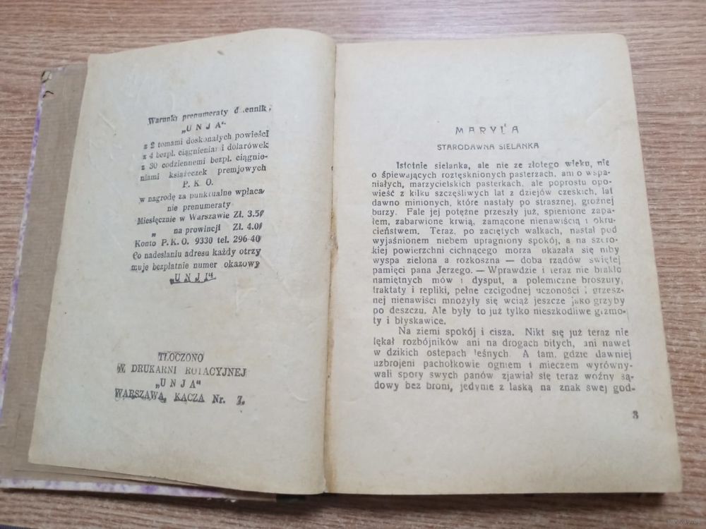 Книга на польском 1920-х годов A.Jirasek MARYLA, Варшава
