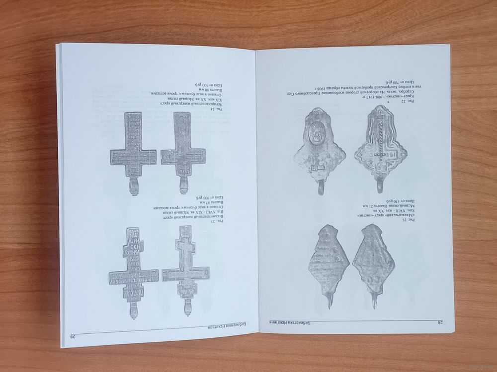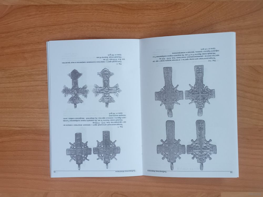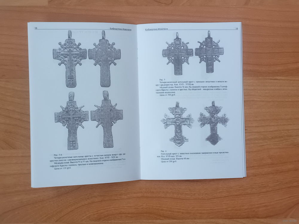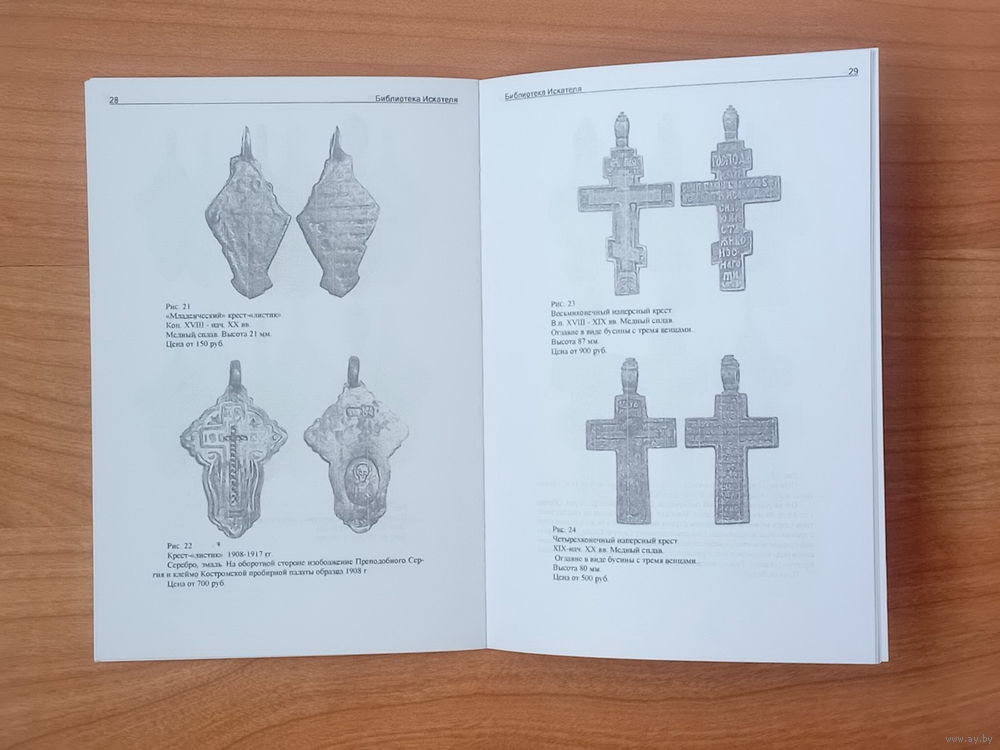 История, основные сюжеты и варианты оформления отлитых и штампованных из медного сплава нательных православных крестов 17-20 в. Содержит крупные иллюстрации, с кратким описанием, датировкой, размерами и примерной начальной коллекционной ценой 55 предметов.