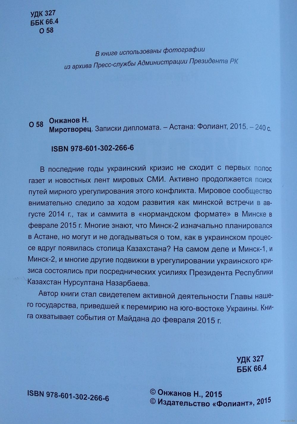 Автор книги, известный казахстанский дипломат, помощник Президента Казахстана Нурлан Онжанов, принимал непосредственное участие в многочисленных переговорах Нурсултана Назарбаева с зарубежными коллегами по такому сложному вопросу как конфликт на юго-востоке Украины. Книга насыщена фактами и материалами, выдержками из бесед Президента Казахстана с лидерами Франции, Германии, России, США, Италии, Швейцарии, Беларуси и самой Украины.