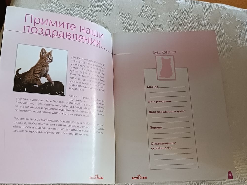 Книга о котёнка, практическое руководство издания Royal Canin, стр. 63, мягкая обложка, с красочными иллюстрациями.
