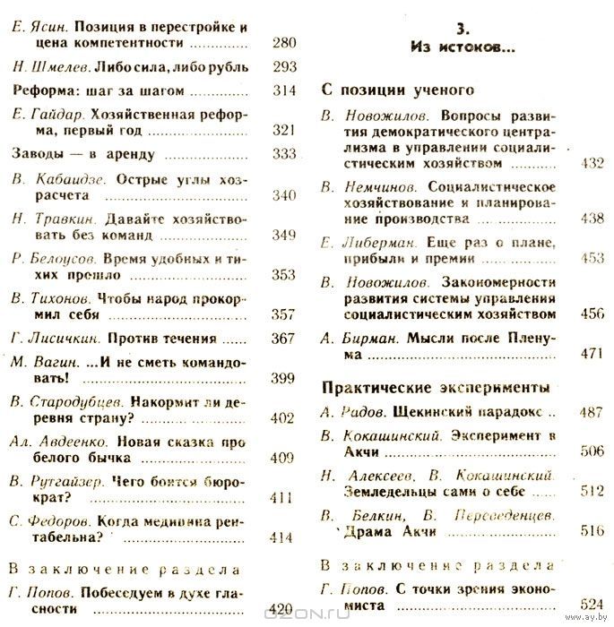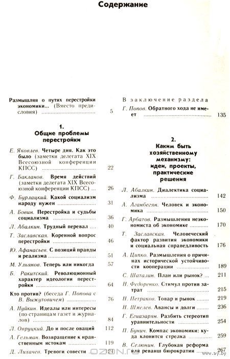 Е. Яковлев, Ф. Бурлацкий, Л. Абалкин, Ю. Афанасьев, Д. Лихачев, Г. Попов, А. Аганбегян, А. Ципко, П. Бунич, Е. Ясин, и др. размышляли о путях перестройки экономики