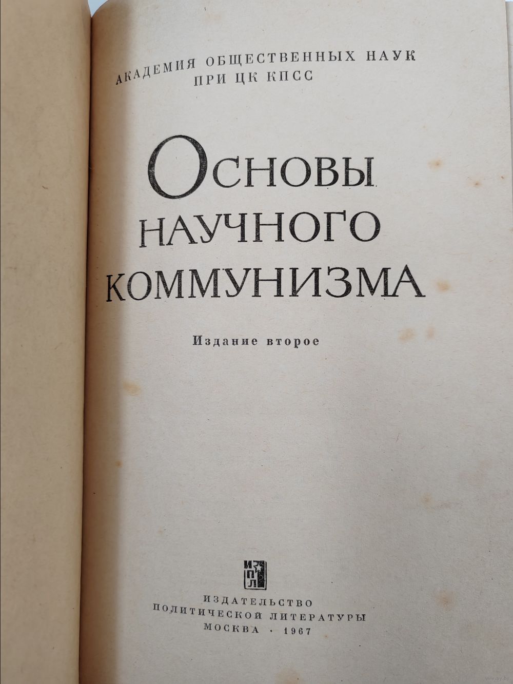 Книга. Основы научного коммунизма. 1967 г.