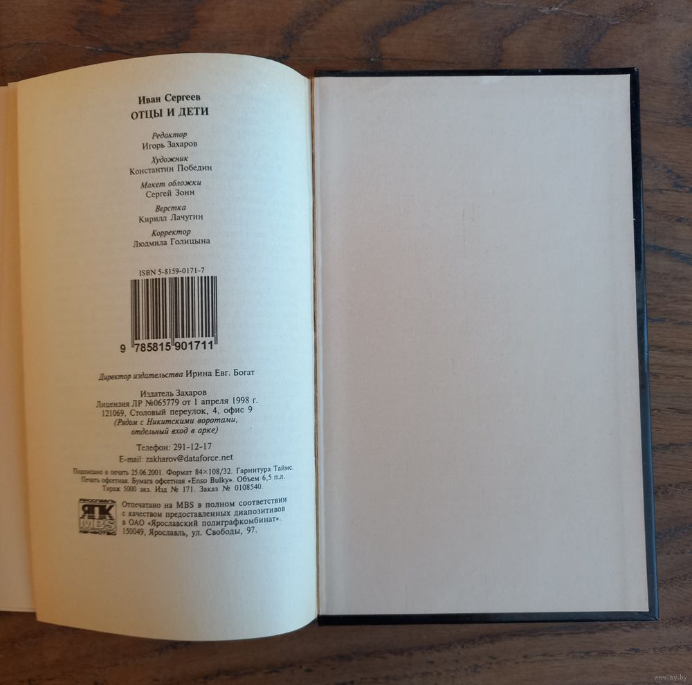 Книга "Отцы и дети" И. Сергеев, издательство "Захаров", 2001 г, новый русский роман, тираж 5 000 экземпляров, Римейк классического произведения: «Отцы и дети» в XXI веке.