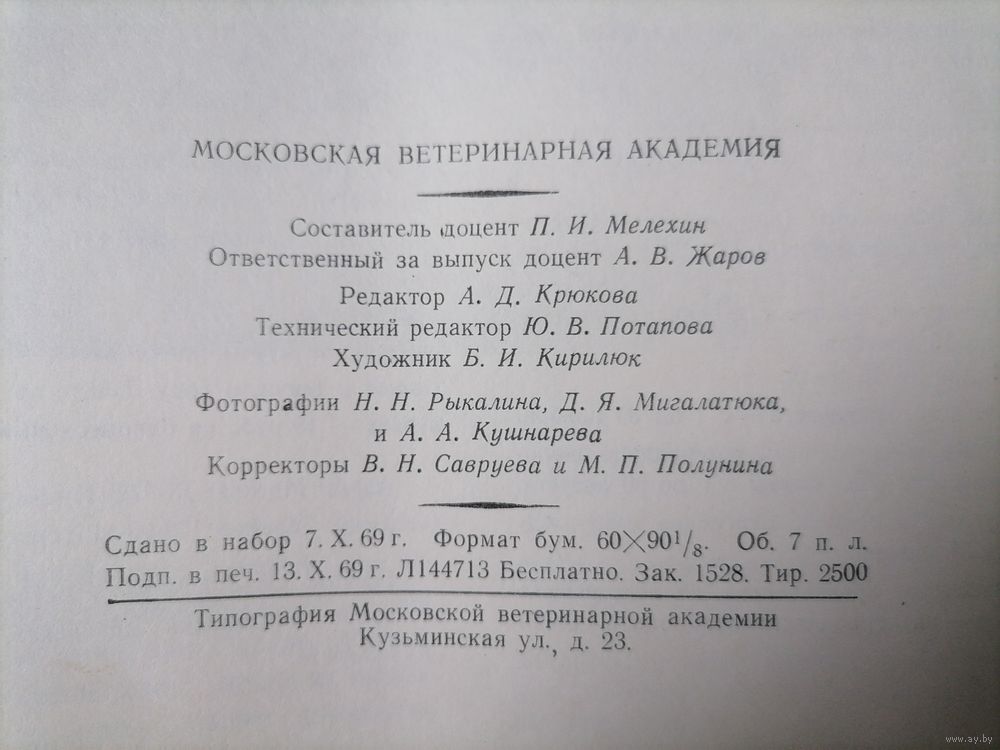 Книга П.И.Мелехин Московская ветеринарная академия 1969г.Тираж-2500
